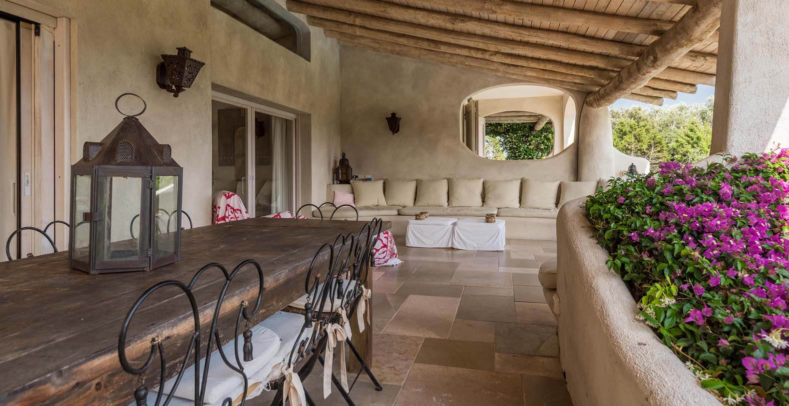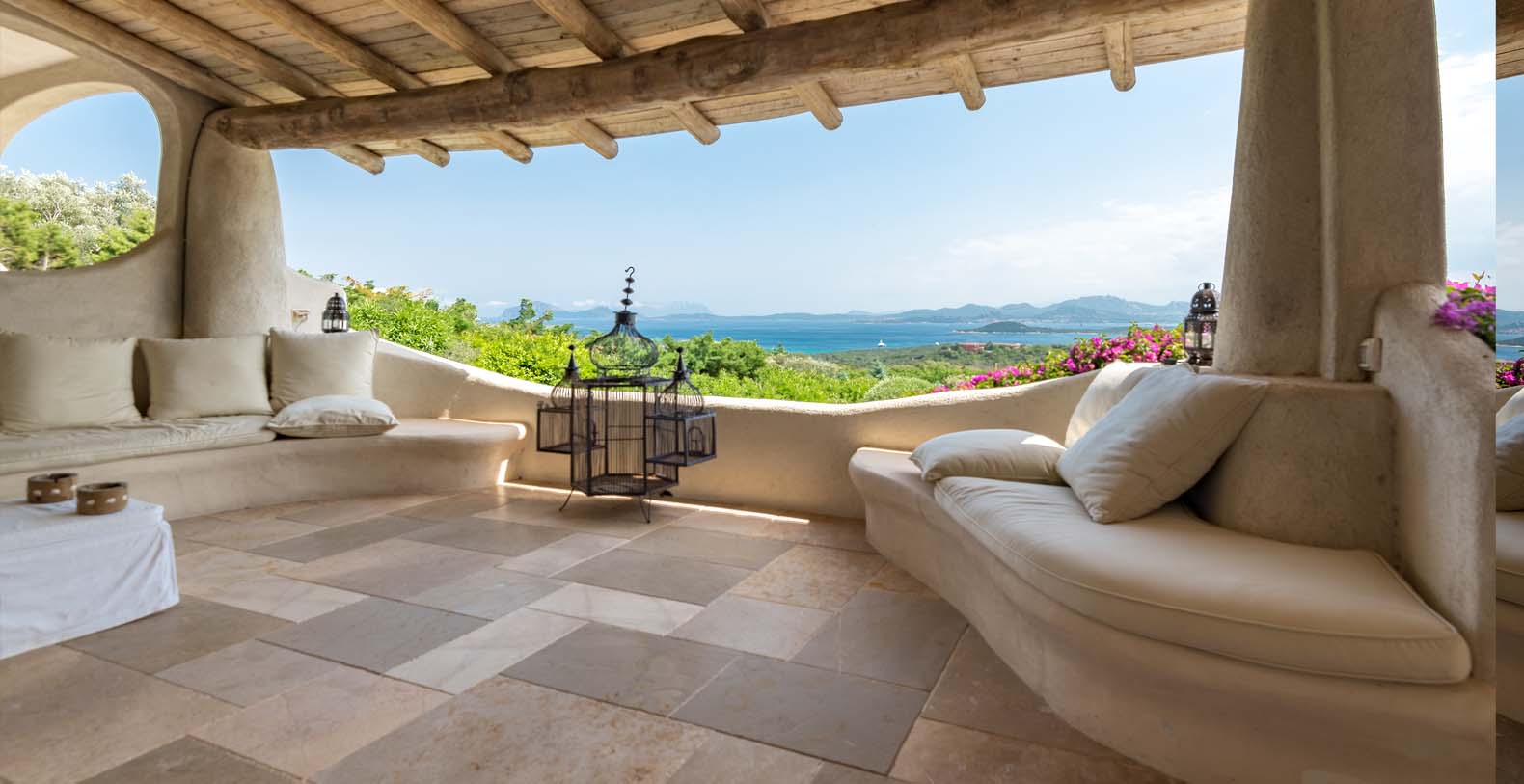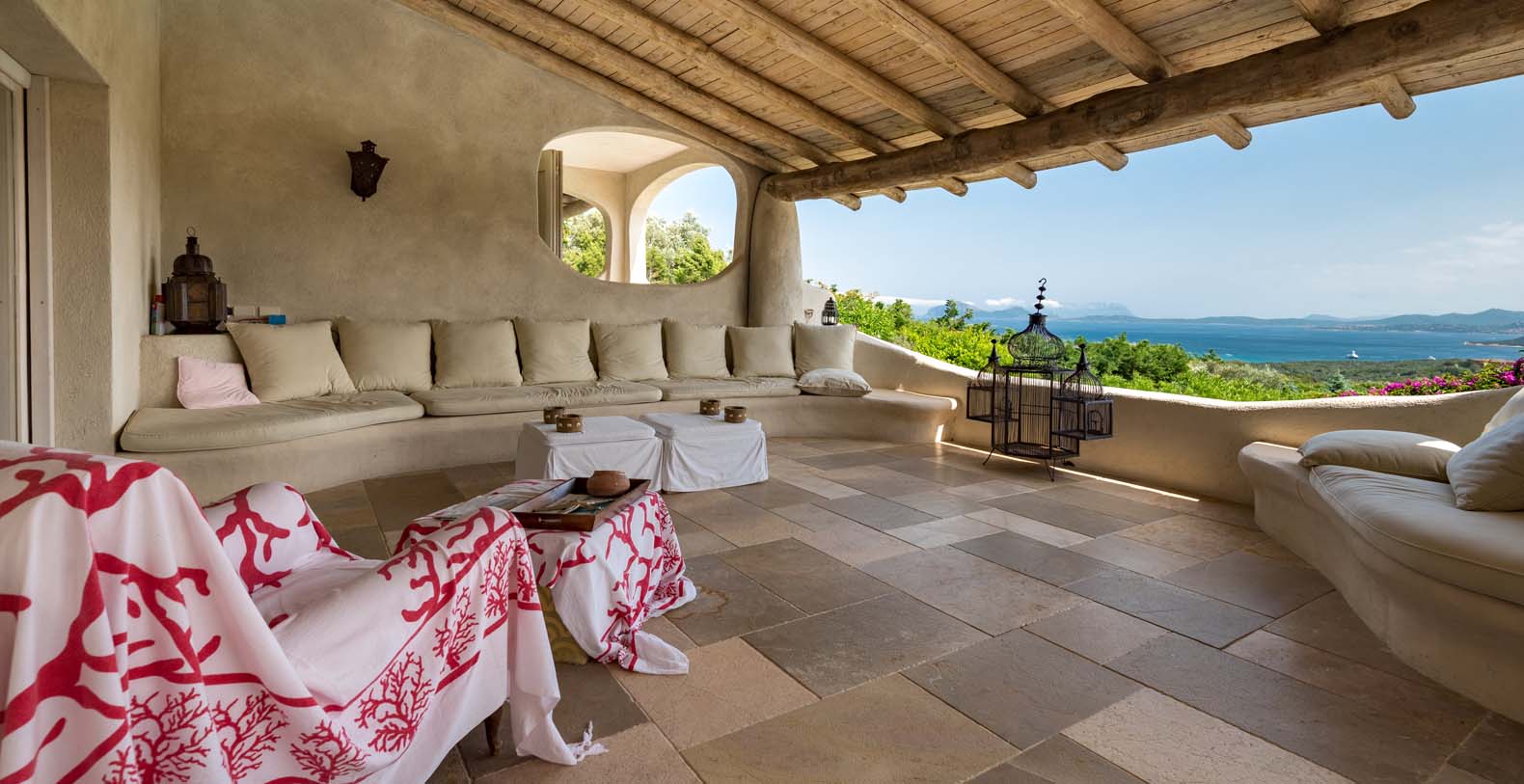 Breathtaking view, developed on two levels, it welcomes a large open space living area with dining room connected through large and bright windows to an elegant covered veranda with exposed beams, the ideal place to relax. Fully equipped kitchen, outdoor dining area with panoramic views of Cala la Volpe this property is the perfect place for summer rental.