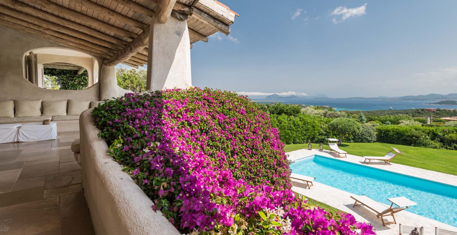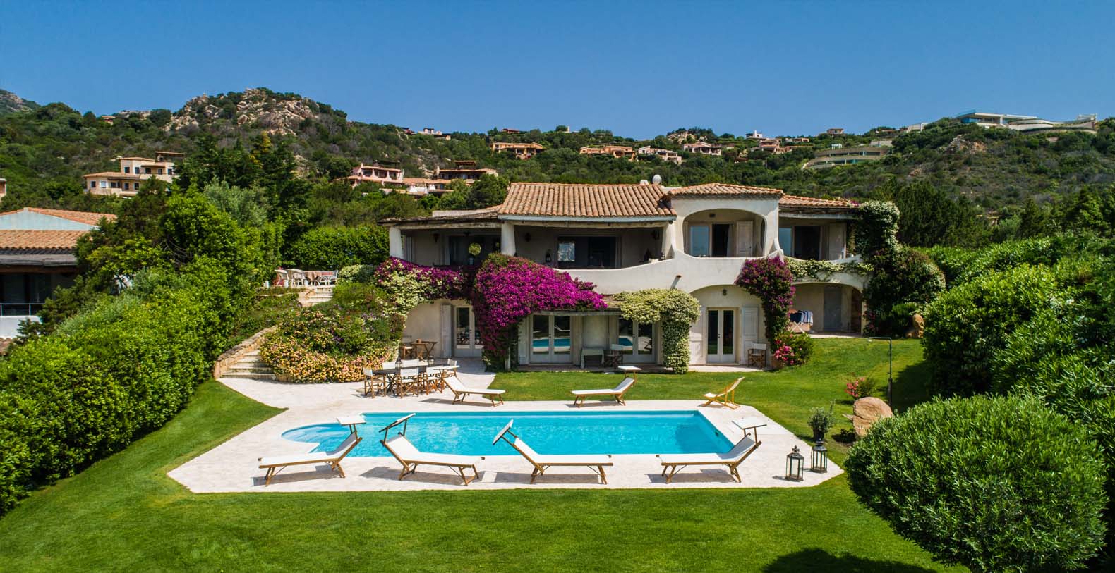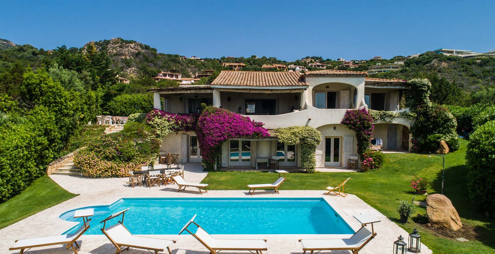 Located on the Pevero hill, overlooking the bay of Cala di Volpe, this charming Mediterranean villa consists of five rooms with private bathroom and a bedroom with a respective bathroom for staff.