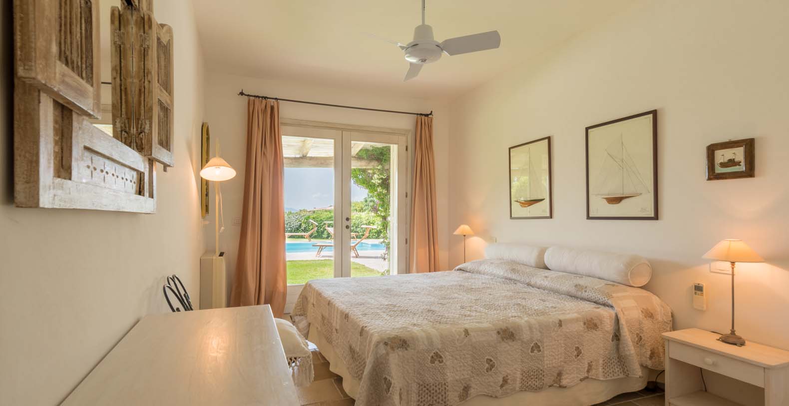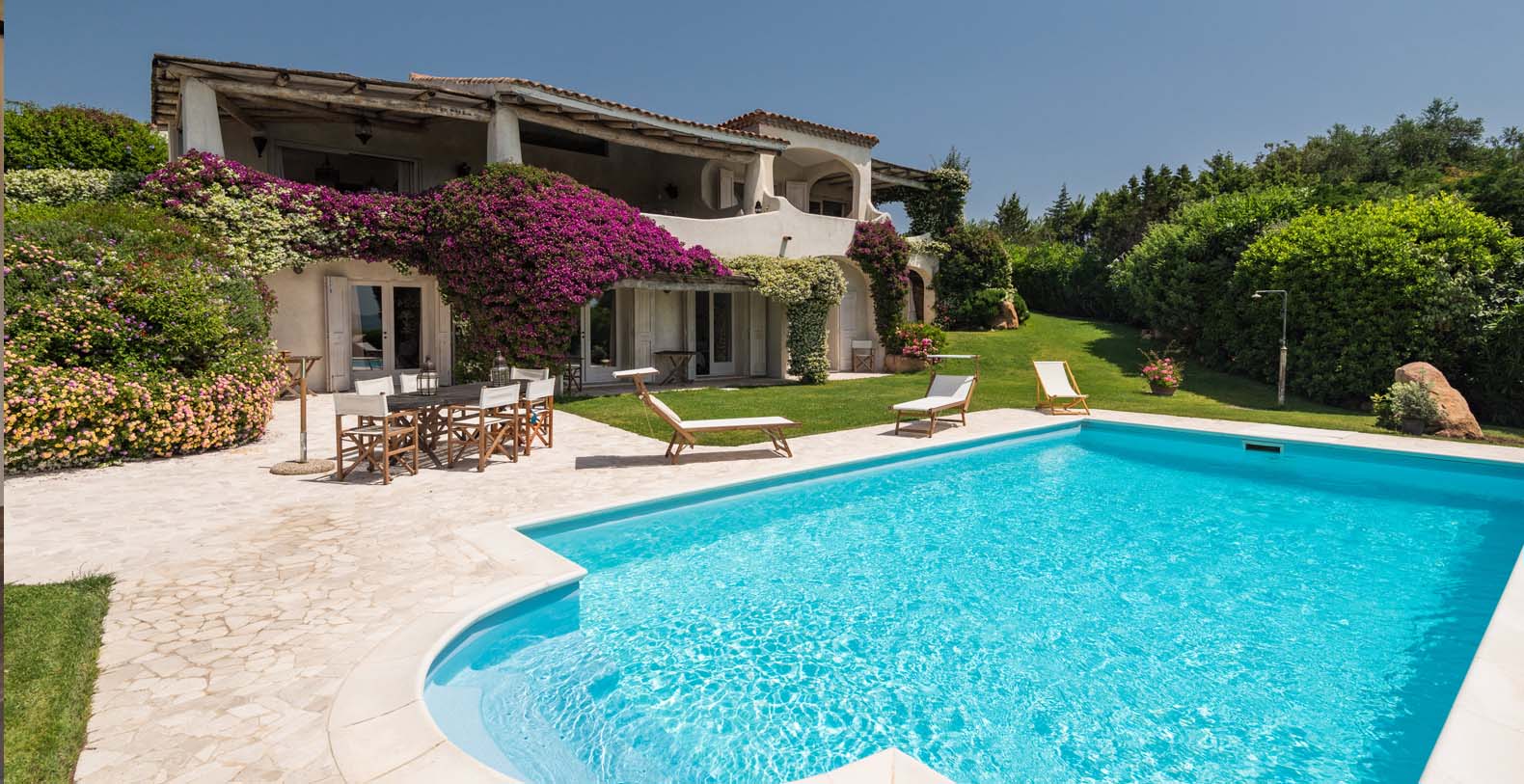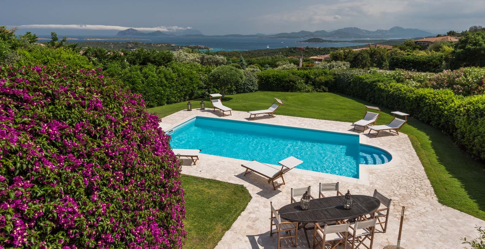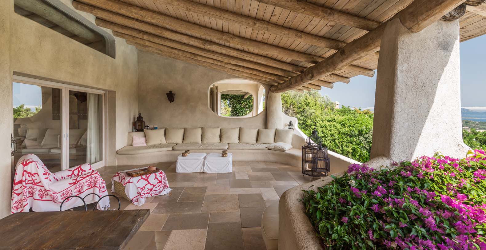 Located on the Pevero hill, overlooking the bay of Cala di Volpe, this charming Mediterranean villa consists of five rooms with private bathroom and a bedroom with a respective bathroom for staff.