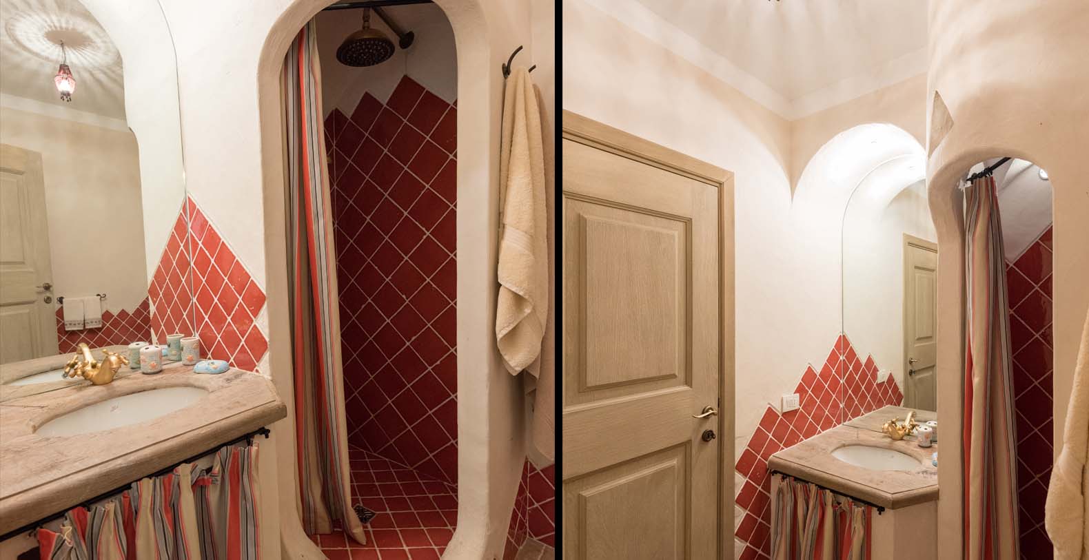 A lush garden with a lively climbing bougainvillea embraces the pool, ensuring privacy and tranquility. On the same level there is the master bedroom with walk-in closet and bathroom with shower and another double bedroom with private bathroom and shower. Both double rooms boast outdoor terraces with romantic views of the sea.