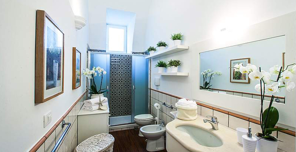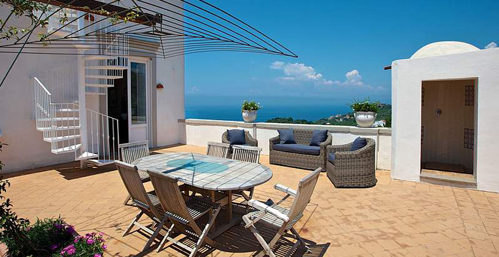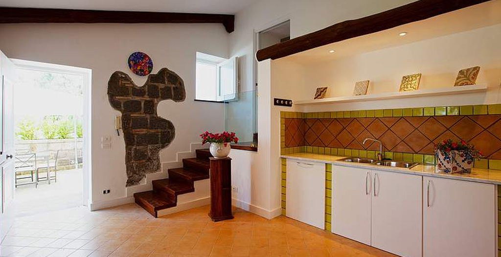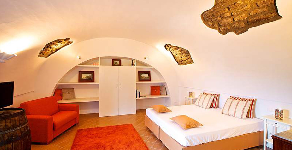 The Suite Arolella, Suite Sammontano, Suite Montecorbo, Suite San Filippo and Suite San Francesco are located in the main building, and include heat and air conditioning, large kitchens, and either a terrace or a large outdoor area where you can drink in the breathtaking views of the Gulf of Naples and the Island of Capri.