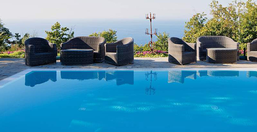 Follow the shaded path that winds its way from the villa to the most scenic side of the estate, where you'll find the beautiful swimming pool surrounded by a beautiful flower-filled garden overlooking the enchanting outline of the Island of Capri... a true slice of paradise!