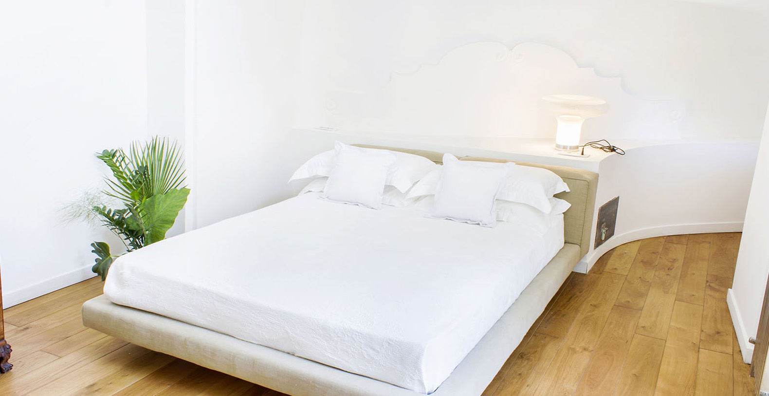 The second junior suite of about 30 mq with oak parquet, double bed of Desirèe design with hand-sewn cashmere washbasins sculpted by fine artists.
