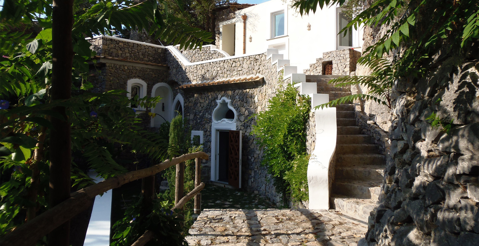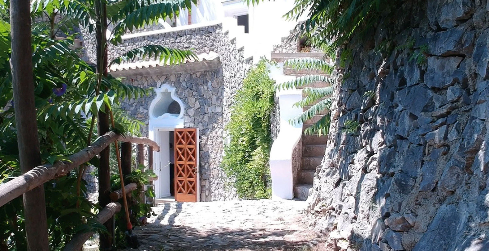 The Shah is surrounded by 15000 square meters of typical Mediterranean vegetation and enjoys a privileged position of total privacy. The property overlooks the beautiful Baia of Capo di Conca and the Emerald Cave and is directly accessible from the main coastal road SS163, where a private parking is located 50 meters from the entrance.