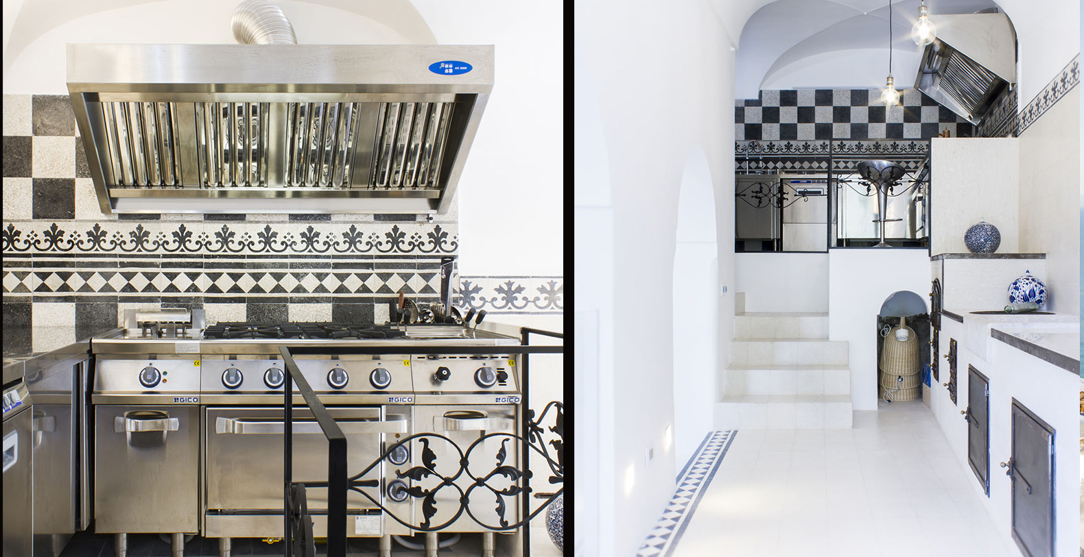 The living area welcomes guests in an environment characterized by high ceilings and allows the passage through 7 steps to the kitchen area, which includes both a traditional kitchen and a professional kitchen, equipped with all necessary accessories.