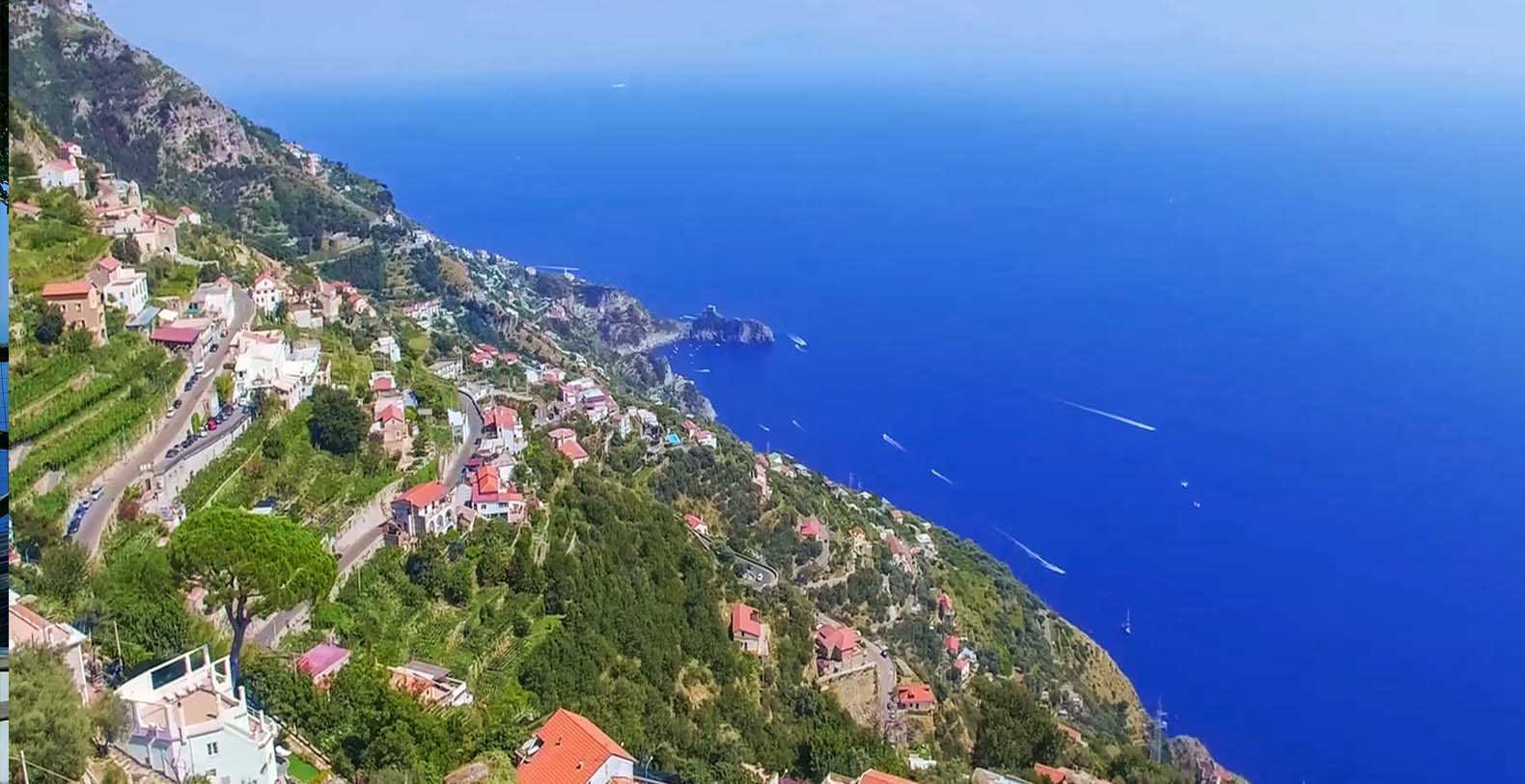 The Amalfi Coast is bordered by Positano (west) and from Vietri sul Mare (east). Positano is a true paradise, developed vertically within a tangled overlay of streets, alleys and shops. Ravello, the most refined village of the ensemble, is dipped in green and characterised by prestigious homes. Minori is a delightful seaside resort that links together the fascination of landscape and sea to the cultural array centred on the archaeological complex of the Villa Romana (Roman Villa).