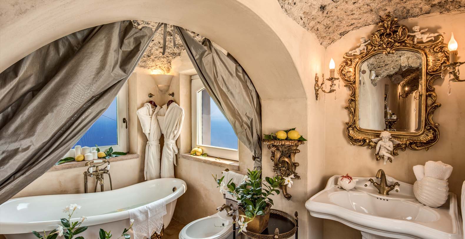 Just like a precious gem embedded in stone, this property is one unexpected luxurious spot in a tiny village in Amalfi Coast, a true retreat for those who love to be secluded yet close to all the important locations in the surroundings. Precious materials, solariums, a wooden pizza oven and a cooking station on the terrace compose a property that is born to make its guests happy. Massimiliano and his wife have chosen the best furnishing and materials and mixed them together.