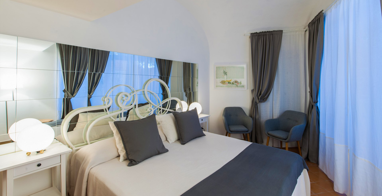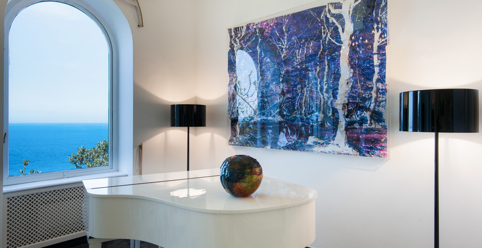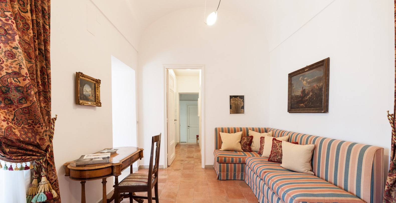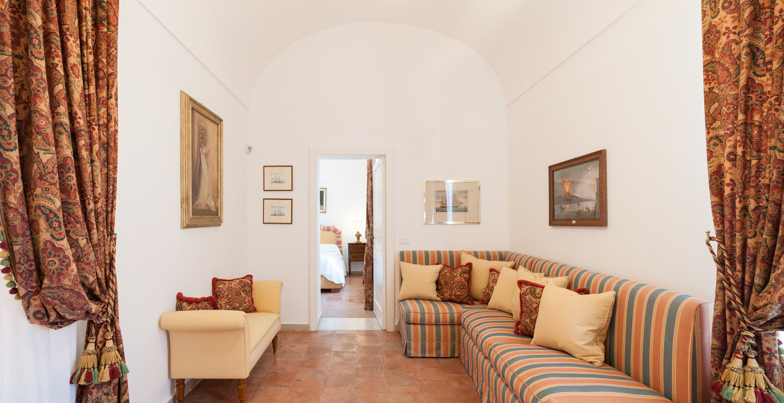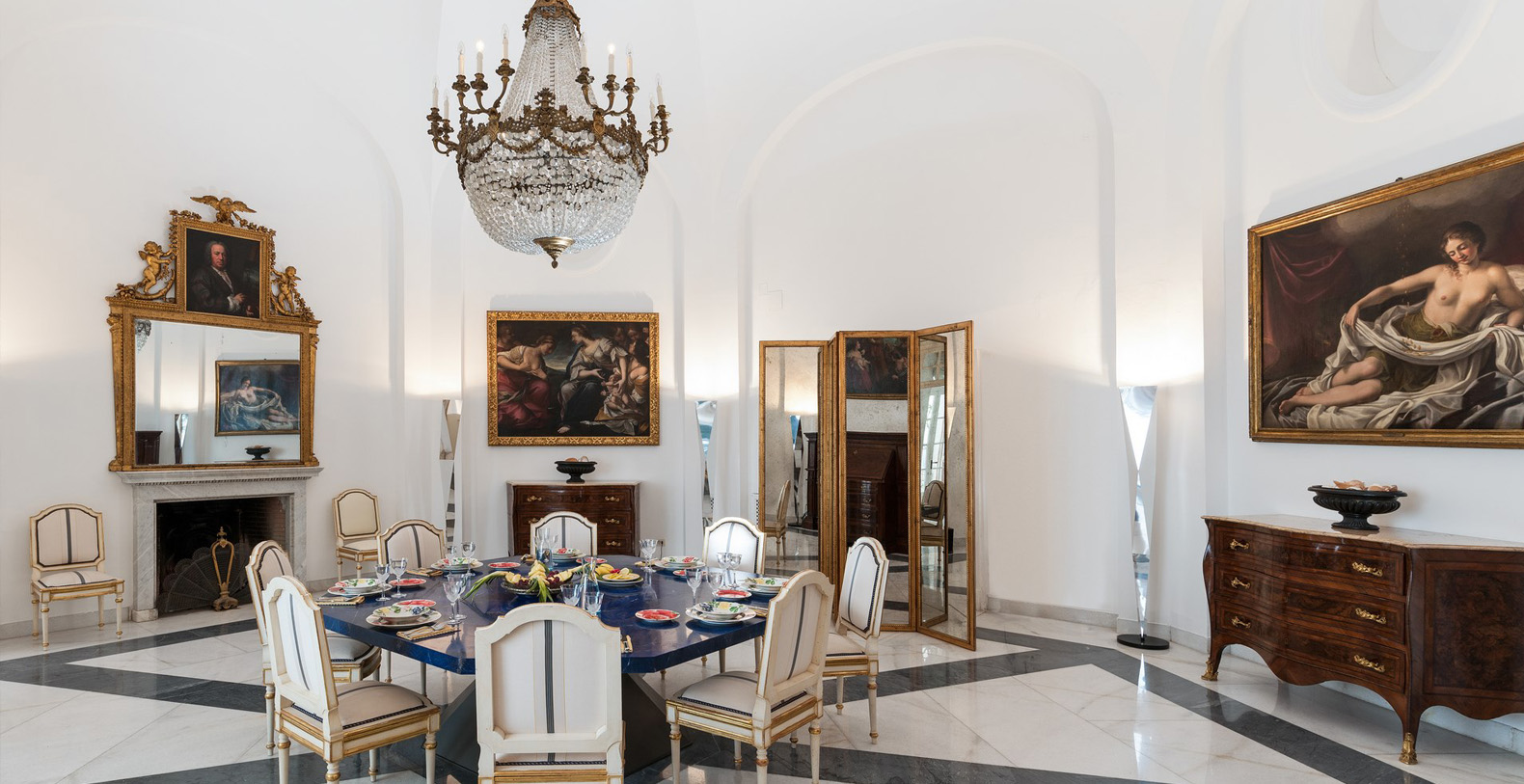 The Villa Camelia complex consists of two connecting buildings, extending over two floors. The first area, referred to as The Landlords Residence blends naturally into the Saloni al Mare or Lounges on the Sea, consisting of large, common areas where all the villas guests can unite. Wide lounges with marble floors, vaulted ceilings, antique crystal lamps, important pieces of antique furniture, and renowned works of art reflect the owner's sophisticated taste as a true art lover and expert.
