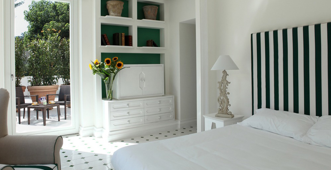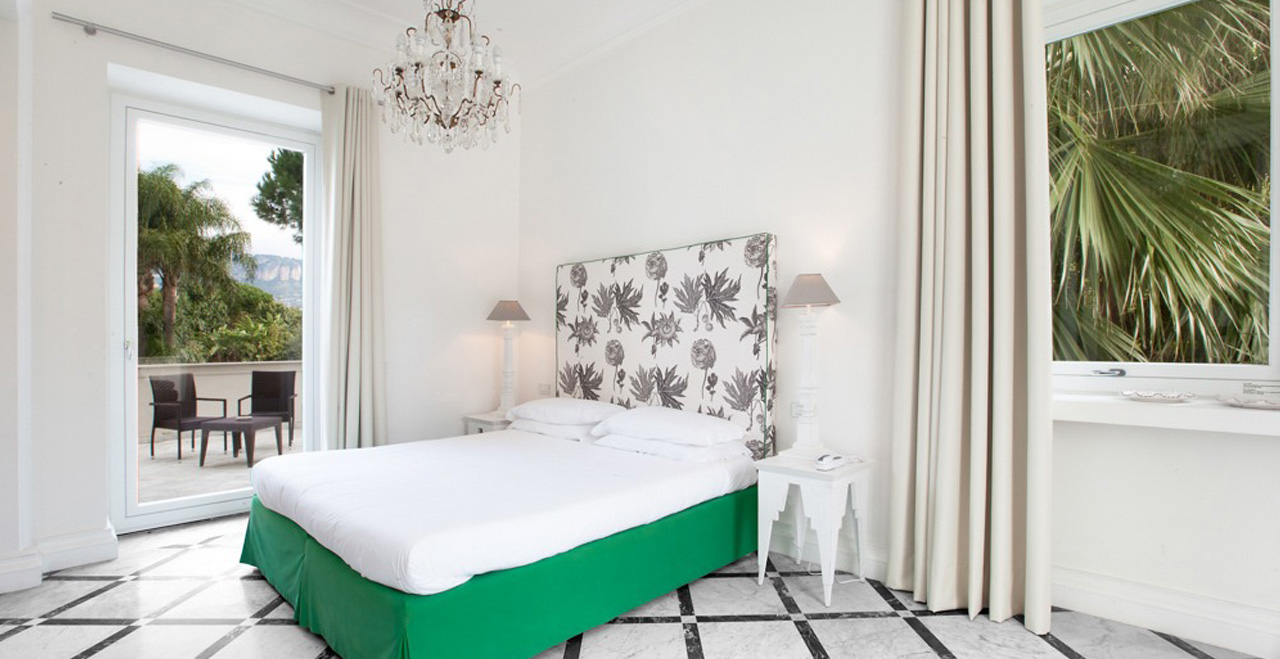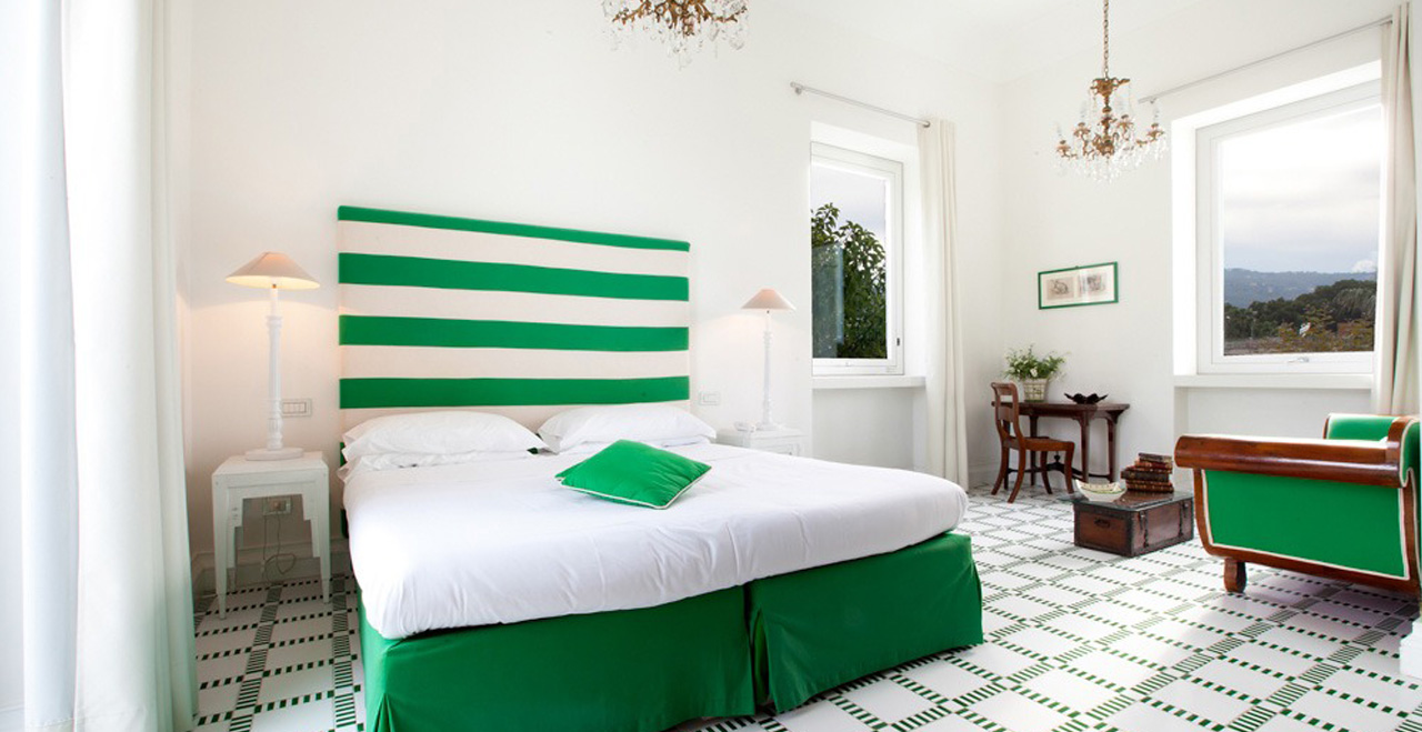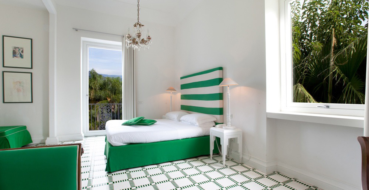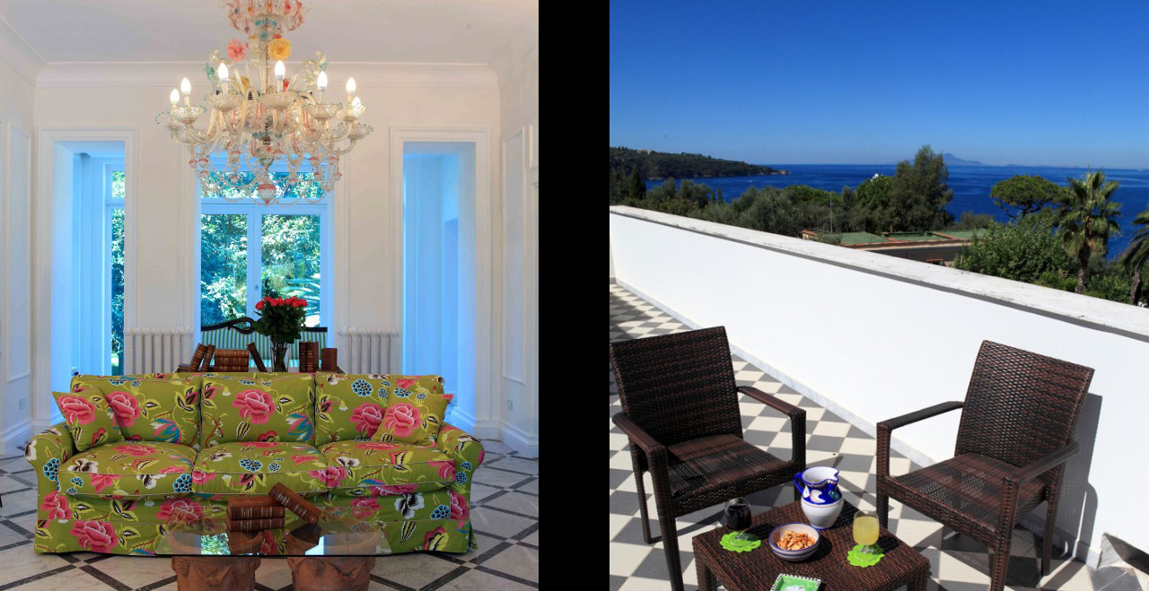 The Villa Dama is a faboulous new luxury Villa in Sorrento Italy off of the Italian Coast. From the 1983 was a noble private villa owned by the a very upscale family and completely renovated in 2010. Now a beautiful Boutique Luxury Villa rented entirely or by the room during certain times of the year. The 18th century villa boasts attention to every detail, with furniture and fittings carefully chosen to combine Art Nouveau style with twenty first century chic. Surrounded by a lush green gardens and ocean as far as one can see, with a promenade flanked by many old palm trees and all kind of plantations wherever your look; this is simply a small corner of paradise where people can relax, with the beach just minutes away by foot and it's in the quiet residential town of Sant’Agnello on the doorstep. A short walk will take you into the heart of Sorrento...