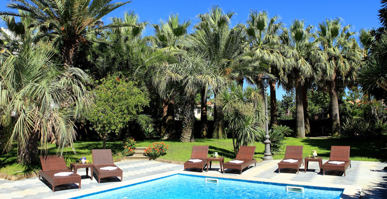Immersed in a lush green oasis of 4,000 square metres, the Villa is perfect when you have a few days to spend simply relaxing. In fact it may be hard to tear yourself away from the tranquility of the garden with its palm and citrus groves, camellia trees and cacti. The Villa is just 50 meters from the beach.