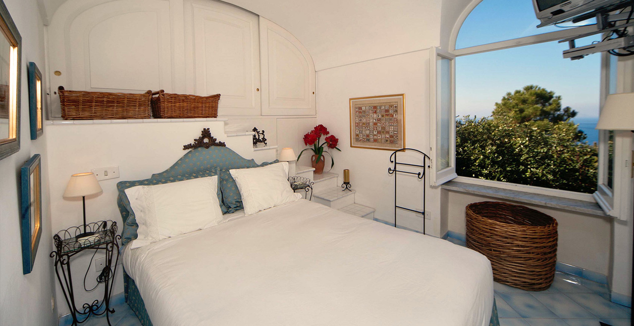 Capri villa with pool near the Blue Grotto - Villa Isola is a rare find, a private villa with pool in a garden setting that offers breathtaking views across the Gulf of Naples to Mount Vesuvius on the mainland. Tucked away on the edge of Anacapri, Villa Isola is within walking distance of a restaurant, shops, beaches and the famous Blue Grotto and its crystal-clear waters, where you can swim after 5pm. Add to that the high quality of the accommodation and you are sure to agree that this charming villa is a very special place indeed.
