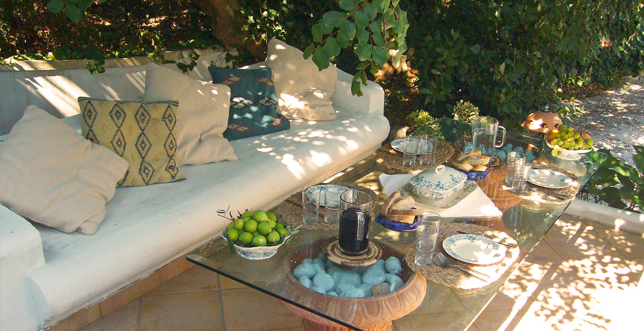 Shady outdoor dining area