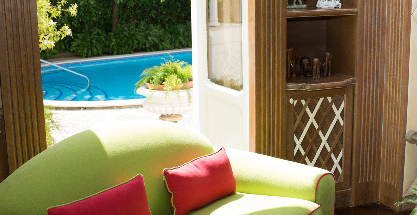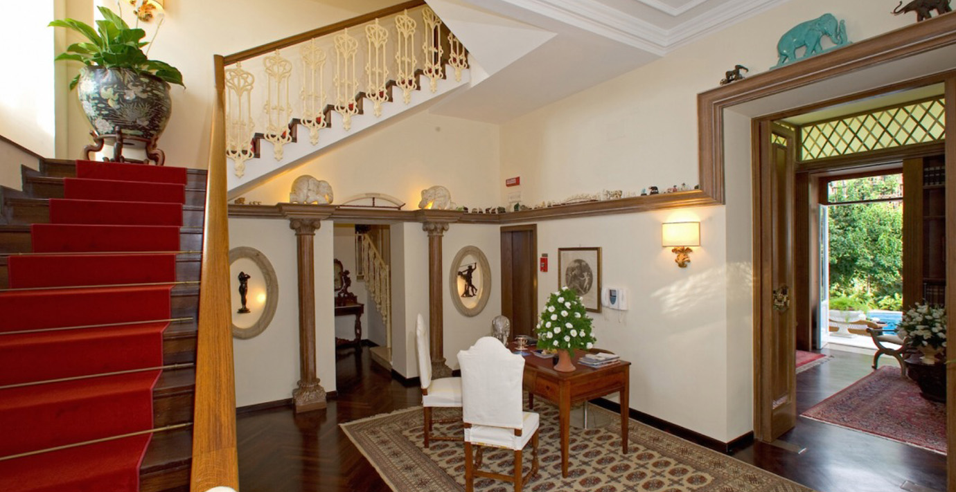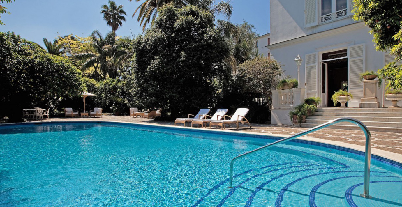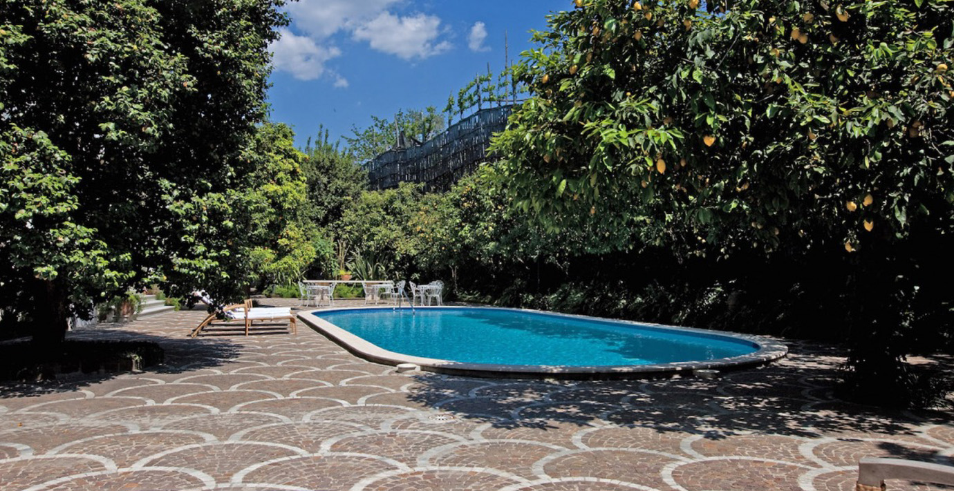 Villa Liberty is a luxurious Italy villa rental residing on the prominent Amalfi Coast. Mature citrus and palm trees surround the villa along with vibrant foliage and stunning views of the sapphire sea. These Italy accommodations are elegant and comfortable while displaying lovely antiques, walls of vintage books and arched doorways capturing the historic and beauty of this luxury villa rental in Italy. A large swimming pool framed with palm trees and Mediterranean plants is located on the terrace and furnished with whicker chaise lounges and large umbrellas. Guest will savor in the marvelous views rendered from the swimming pool deck area while absorbing the Mediterranean sunshine on the grounds of Villa Liberty.