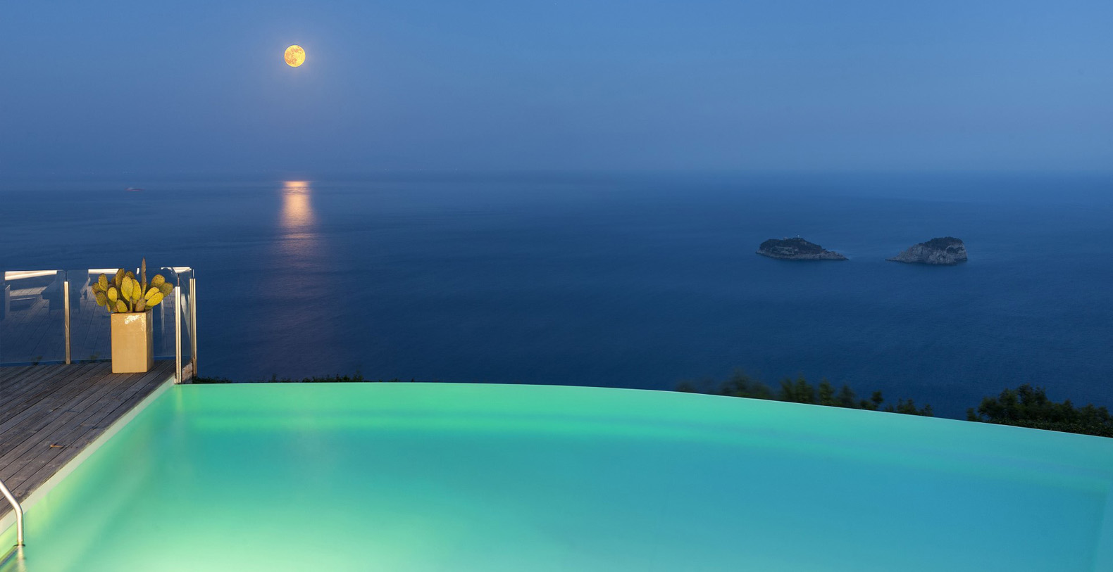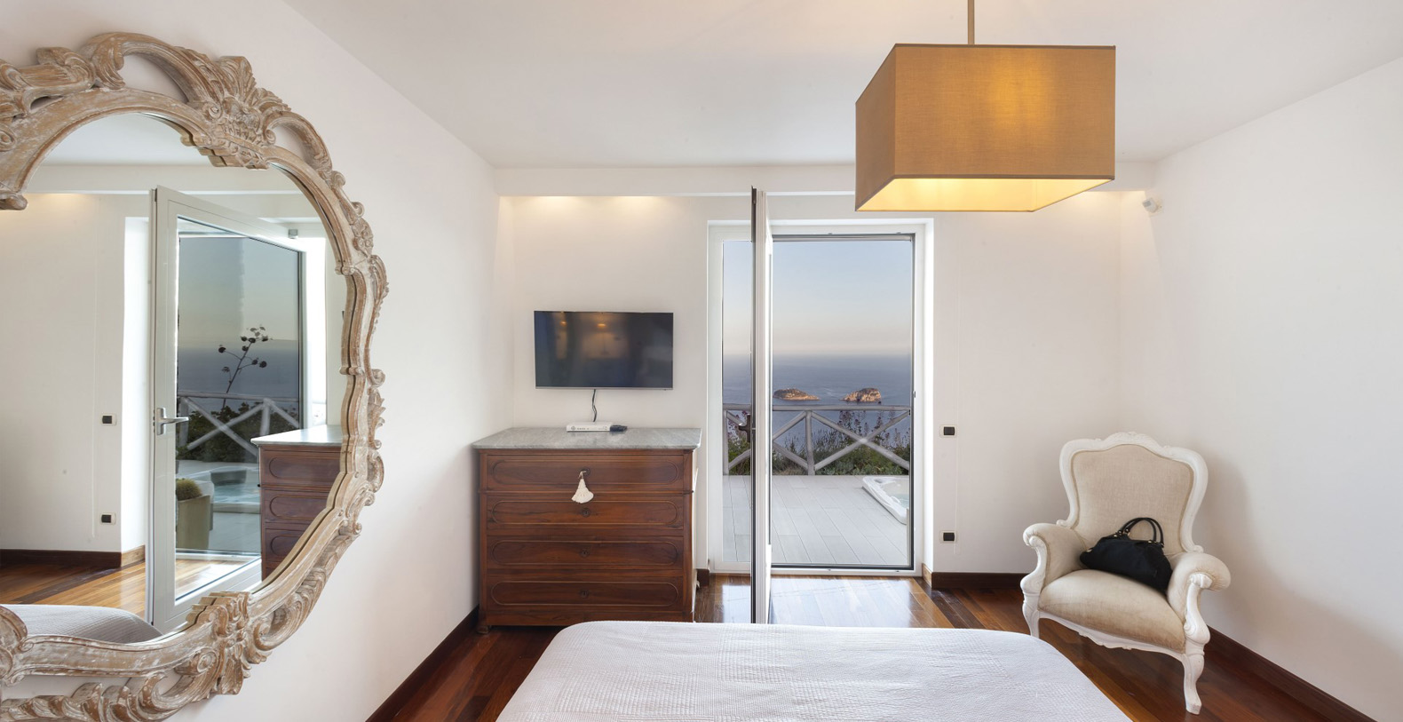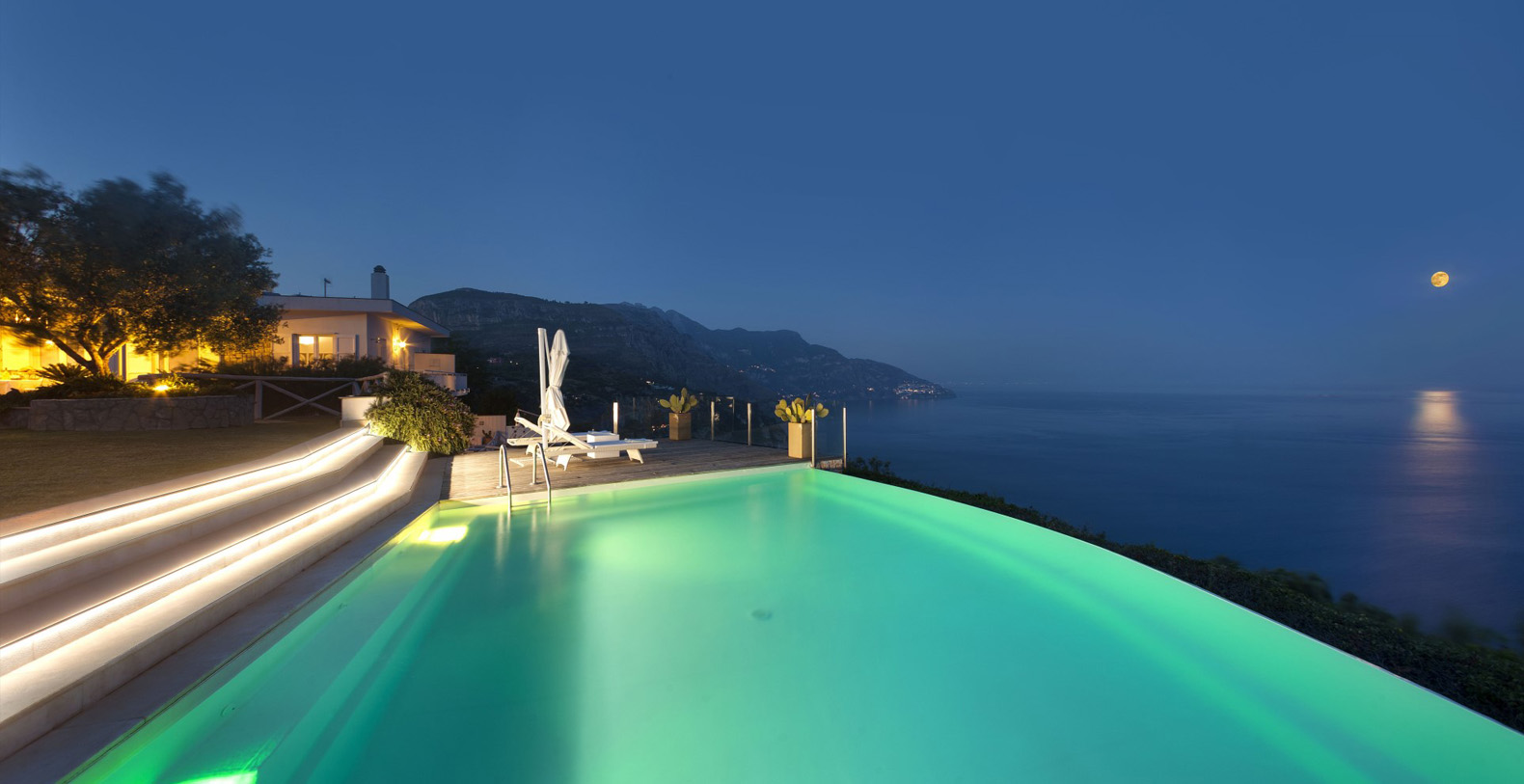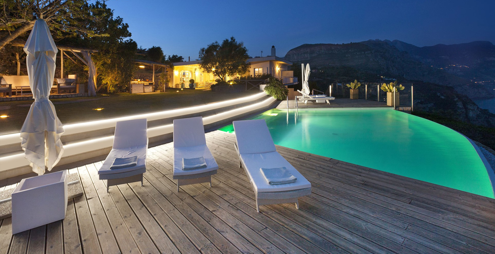 Whether you are just waking up or about to fall asleep in its many gorgeous bedrooms, and when you’re enjoying a cup of coffee in the living room, relaxing in the hot tub on the balcony, strolling through the villa large garden, or swimming in the gorgeous infinity and heated pool, you will always enjoy this spectacular view.