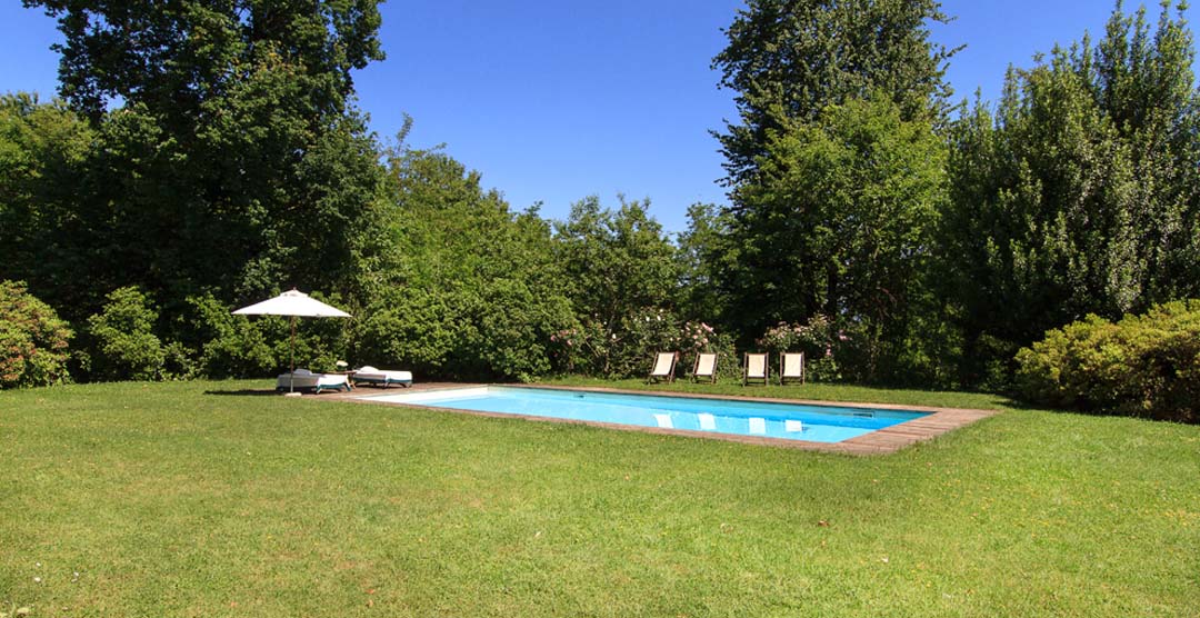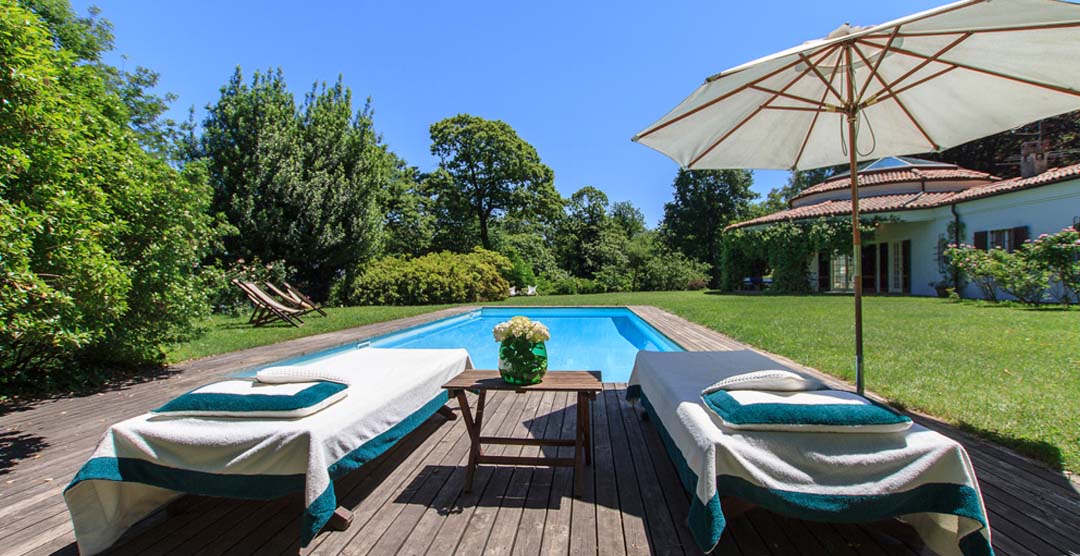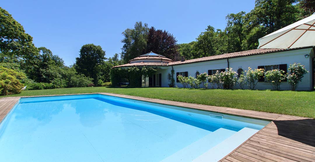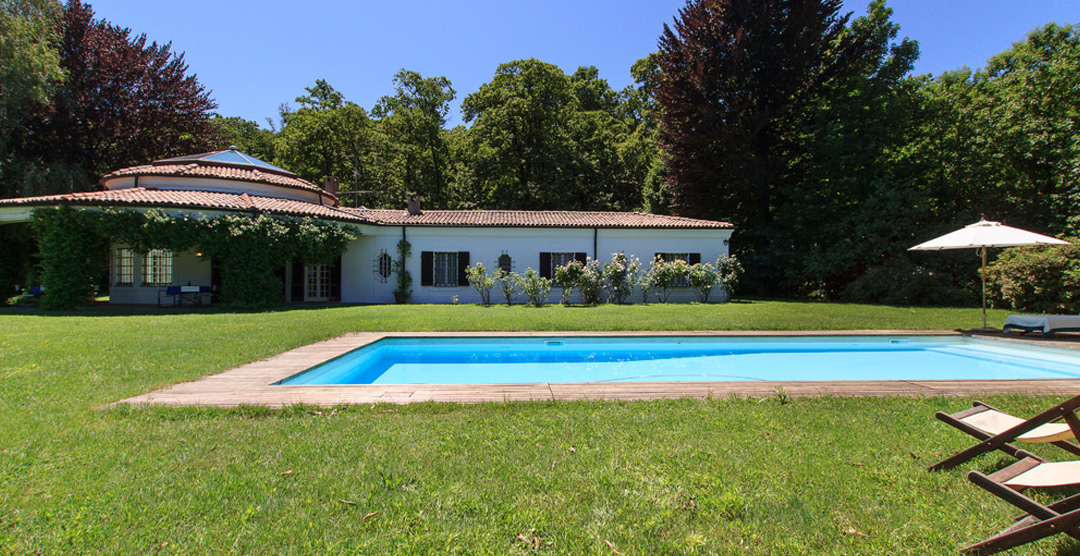Outside you can wine, dine and relax in the shade of the covered terrace with table and chairs or enjoy the sun in the garden (1000m²) with beautiful lawn and lakeviews. The large swimming pool (11 x 5m) is surrounded by a wooden decking with sun beds and parasols. The villa is set in large private park (40000m²) bordering the protected natural park “Parco Naturale Lagoni di Mercurago” great for walks, tranquility and peace in the midst of nature.