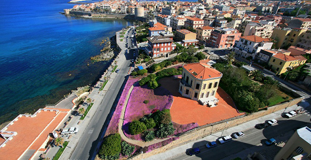 Villa Mosca Charming House is embedded in a unique location. Charm, history and culture. Spectacular views and lush grounds along Dante promenade in Alghero. The Charming House is a few steps from the sea and from the old town, protected by ancient ramparts. The sea view, the breathtaking panorama on Capo Caccia promontory and on the surrounding villas add a relaxing atmosphere to Villa Mosca Charming House.