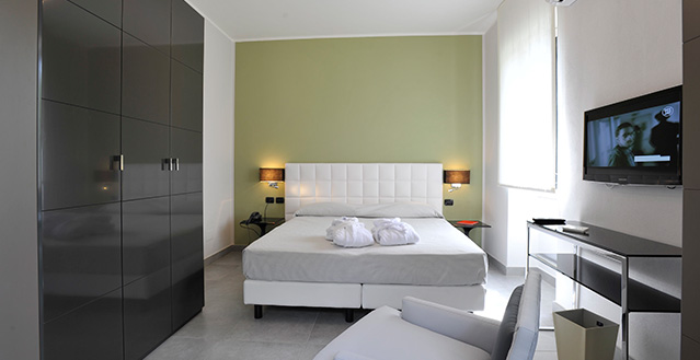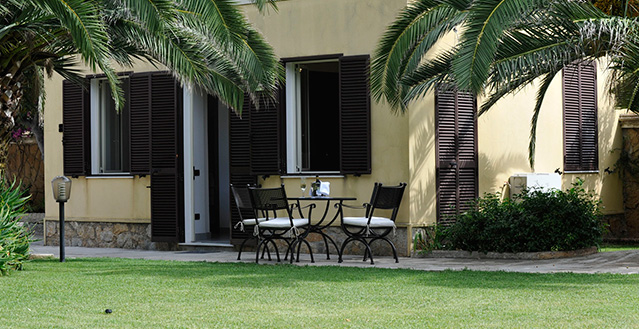 The Villini accomodations are instead ideal for those who prefer a personal living room to discuss business and a fully equipped kitchenette at your leisure. If necessary, a sofa bed can accommodate a third person. Surrounded by the greenery and about 20 meters away from the Villa, these independent buildings dispose of the same comfort of the rooms.