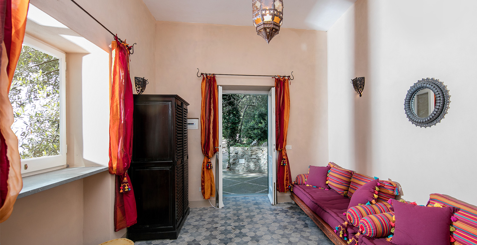 Along with the ample terraces and gardens, Villa Oliver boasts a modern, eco-friendly swimming pool, linked to the villa by a stone path surrounded by verdant vegetation. Close to the swimming pool is the pool house which provides a spacious changing room, bathroom facilities and storage. On the pool’s surrounding terrace there is a dining table where guests can enjoy meals together with friends and family, and admire the beautiful sunsets when the reddened sun drops into the sea disappearing behind the island of Ischia.