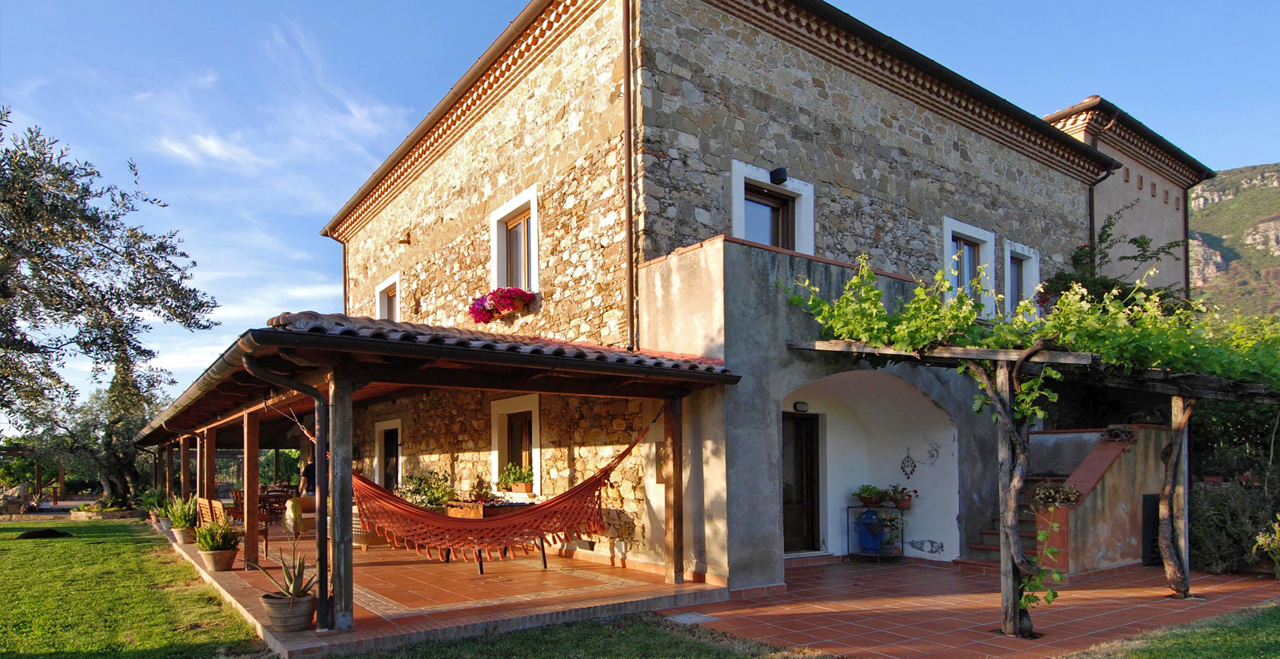 This imposing stone-built farmhouse dating back to the nineteenth century has been sympathetically restored and brought up-to-date with all modern comforts, including air conditioning, set in an attractive Mediterranean oasis in the countryside of Paestum, with spectacular views stretching across the Cilento and Amalfi coast, all the way to the island of Capri.