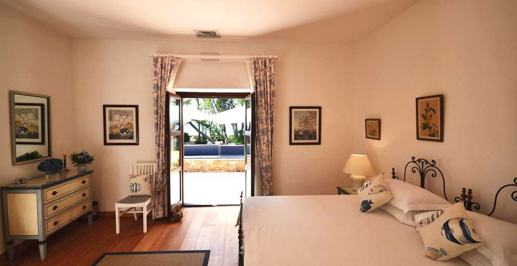 The terraces surrounding the villa are filled with scented jasmine, honeysuckle and bougainvillea. There are long comfortable cushioned sofas all along the front of the house and a separate palm covered seating area with spectacular views overlooking the sea making it a perfect place to relax and enjoy a cool drink or read a book. Candlelight and the sound of the sea gently lapping on the shore a stone’s throw away makes this a truly romantic spot.