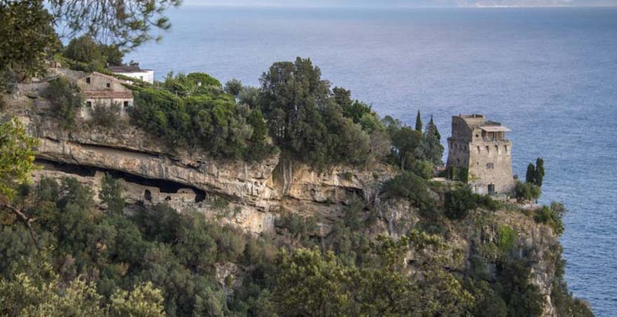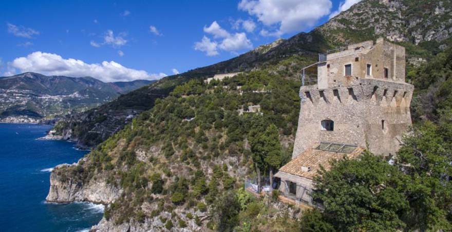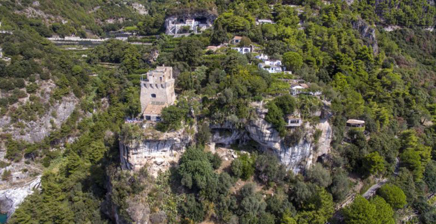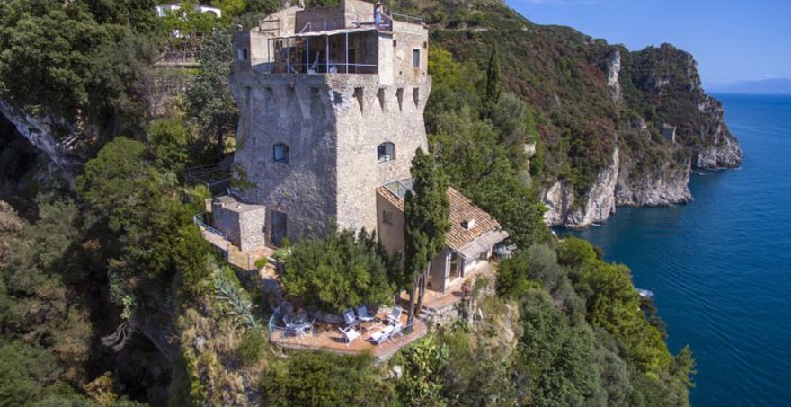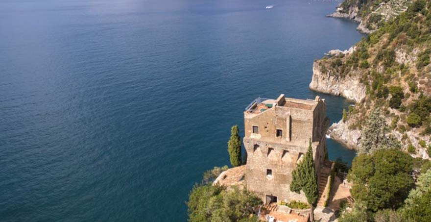 Villa Torre Saracena is a medieval watchtower situated on a sheer cliff within one of the most extensive private luxury estates of the Amalfi coast with four different charming separate annexes. The grounds of this holiday rental villa descend the hillside from the coastal road through dense Mediterranean vegetation of scented pine woods, lemon trellises and beautifully tended gardens all the way to the sea.