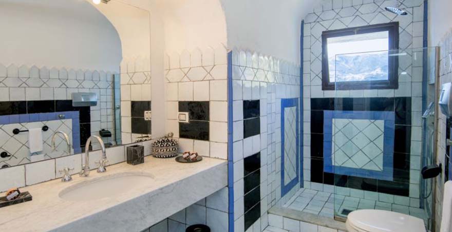 Ground Floor: large entrance/living-room with access to the terraces through plate glass doors, leading down to separate dining-room with magnificent view. Fully-equipped kitchen with larder. Outdoor barbeque.