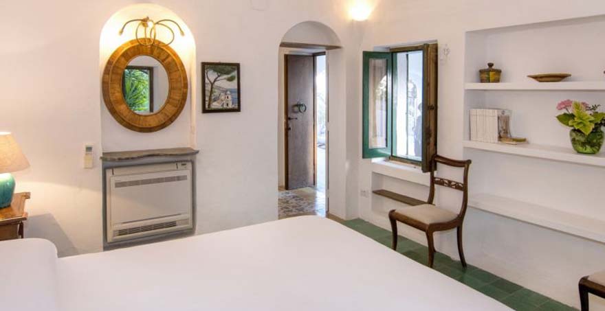 Second Floor: 1 double master bedroom with air conditioning and 1 bathroom with shower. Access to a private terrace with special solarium, outdoor shower, and splendid views of the sea and the Amalfi coast.
