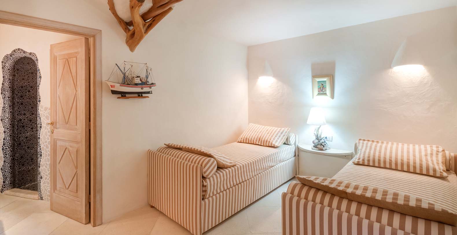 This is a semi detached property that sits on the hill of Pantogia, boasting a breathtaking sea view of the the Grande Pevero Bay. This completely renovated property, keeps the Sardinian style while offering a fresh and contemporary décor. The villa boasts a wide living and an indoor dining area, fully equipped kitchen and an outdoor veranda with dining table and relaxing lounge terrace. The house has in total 6 bedrooms 4 are double, 1 twin and 1 single that can be turned into a tidy double for staff all with en suite bathrooms with showers.
