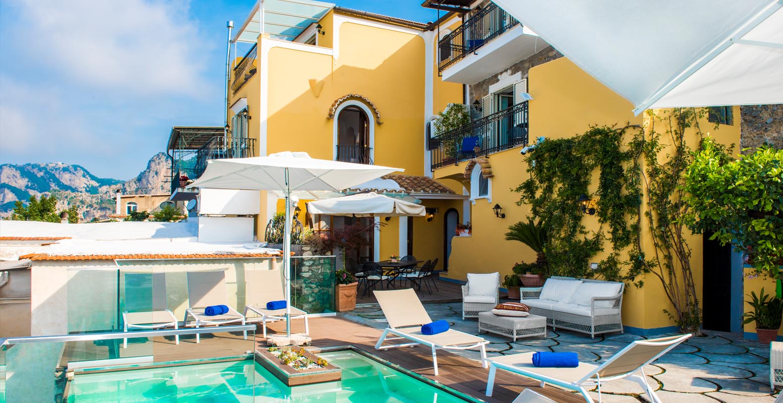 Villa Degli Dei a luxury villa in Postiano Italy is where you will enjoy unique breathtaking views 500 meters above sea level, between earth and sky! If you are looking for a Panoramic Villa in Positano, furnished with great taste, and able to let you fully enjoy the beauty of the Amalfi Coast, choose Villa Degli Dei to make your stay an unforgettable dream. With just one look you can see the entire Amalfi Coast and be seduced by the beauty of crystal-clear sea and untouched nature, rich with strong scents. The comfortable and romantic furniture will give you the feeling of being pampered every second, a feeling that the Jacuzzi will accentuate giving you the desire to stay forever in this wonderful place.
