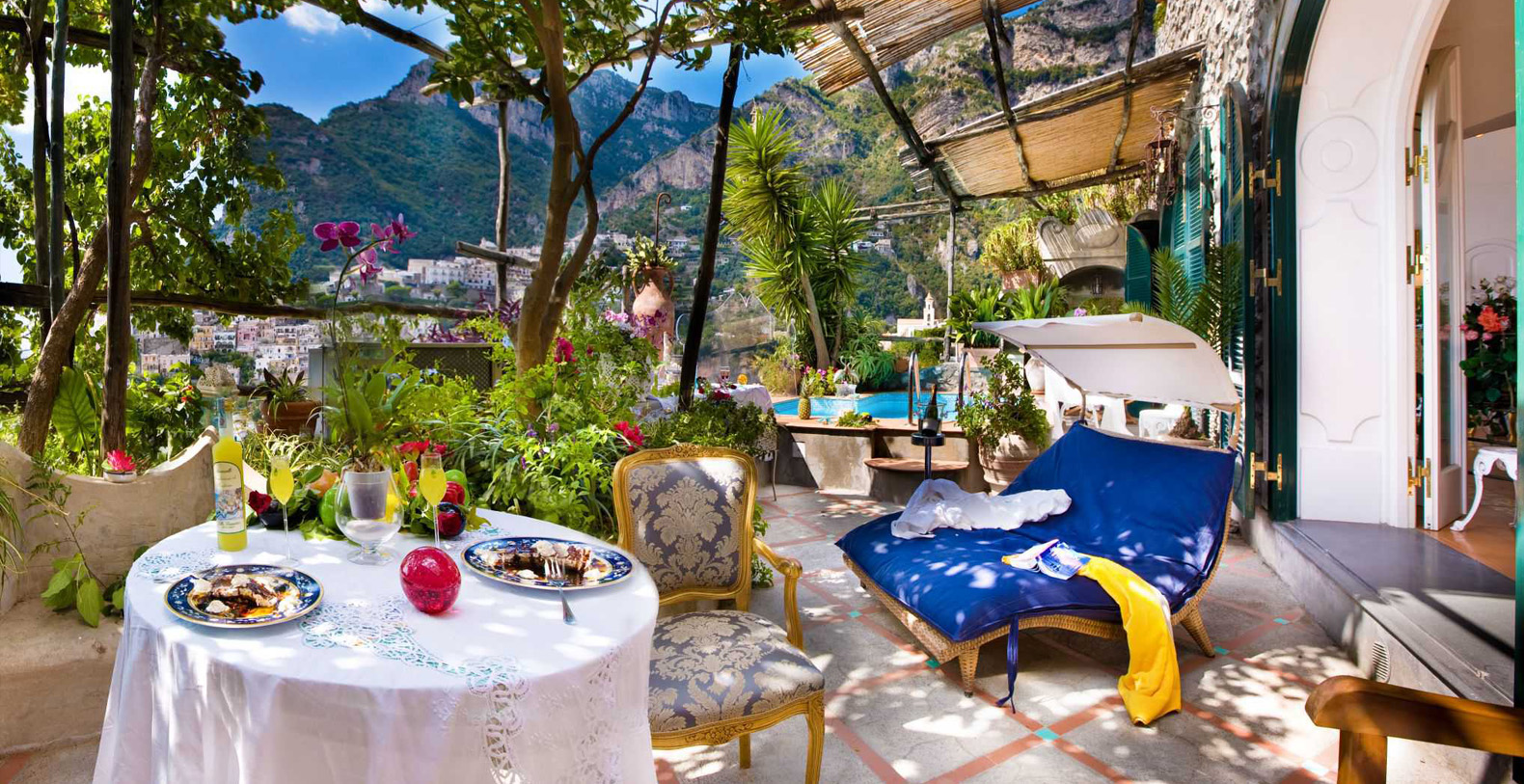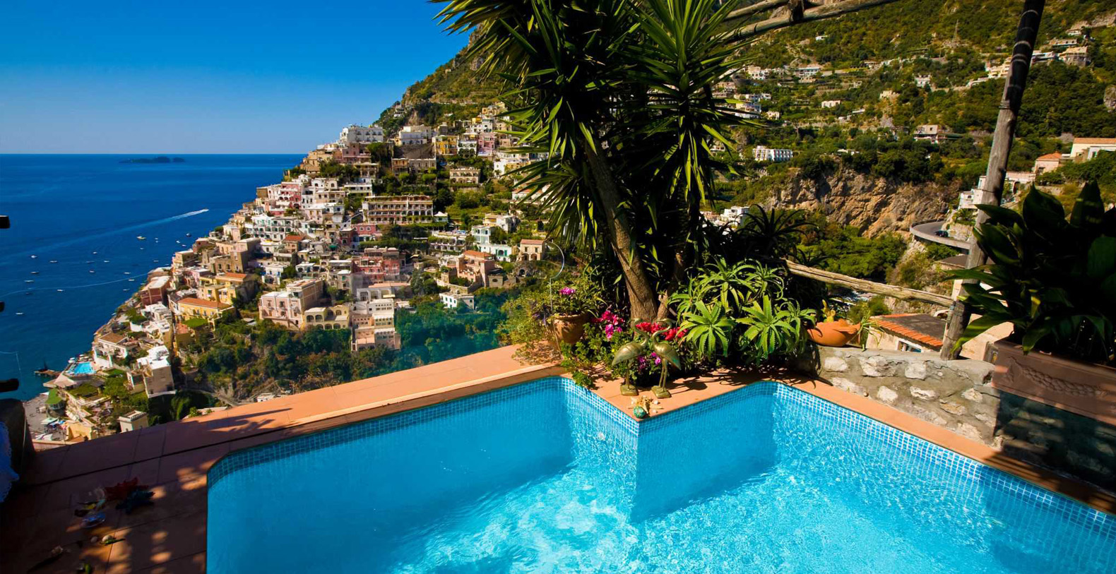 The Villas of Positano are situated in a wonderfully suggestive landscape with marvelous views and only a few minutes from the beach in Positano. It is the ideal location for your holidays on the Amalfi Coast, immersed in an atmosphere of peace and tranquillity. The Bougainville and other Mediterranean plants frame the terraces and the infinity pools shaded by the lemon trees, and the solarium facing the Isola Li Galli creates a magical dreamlike scenery for its guests.