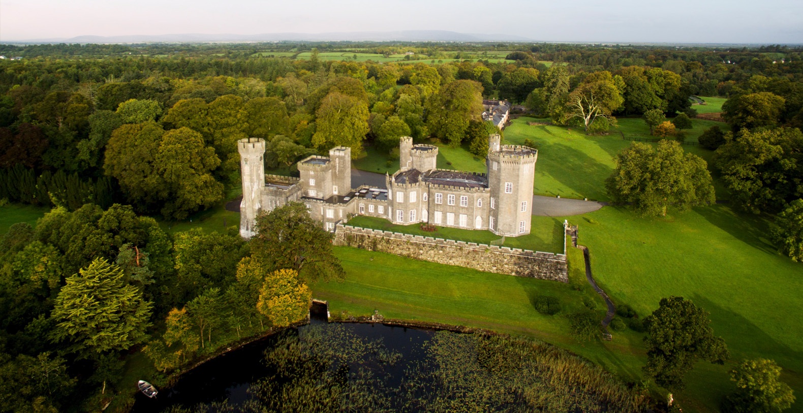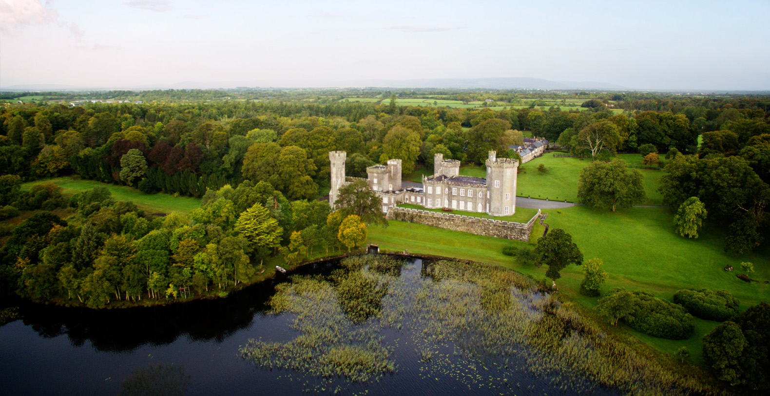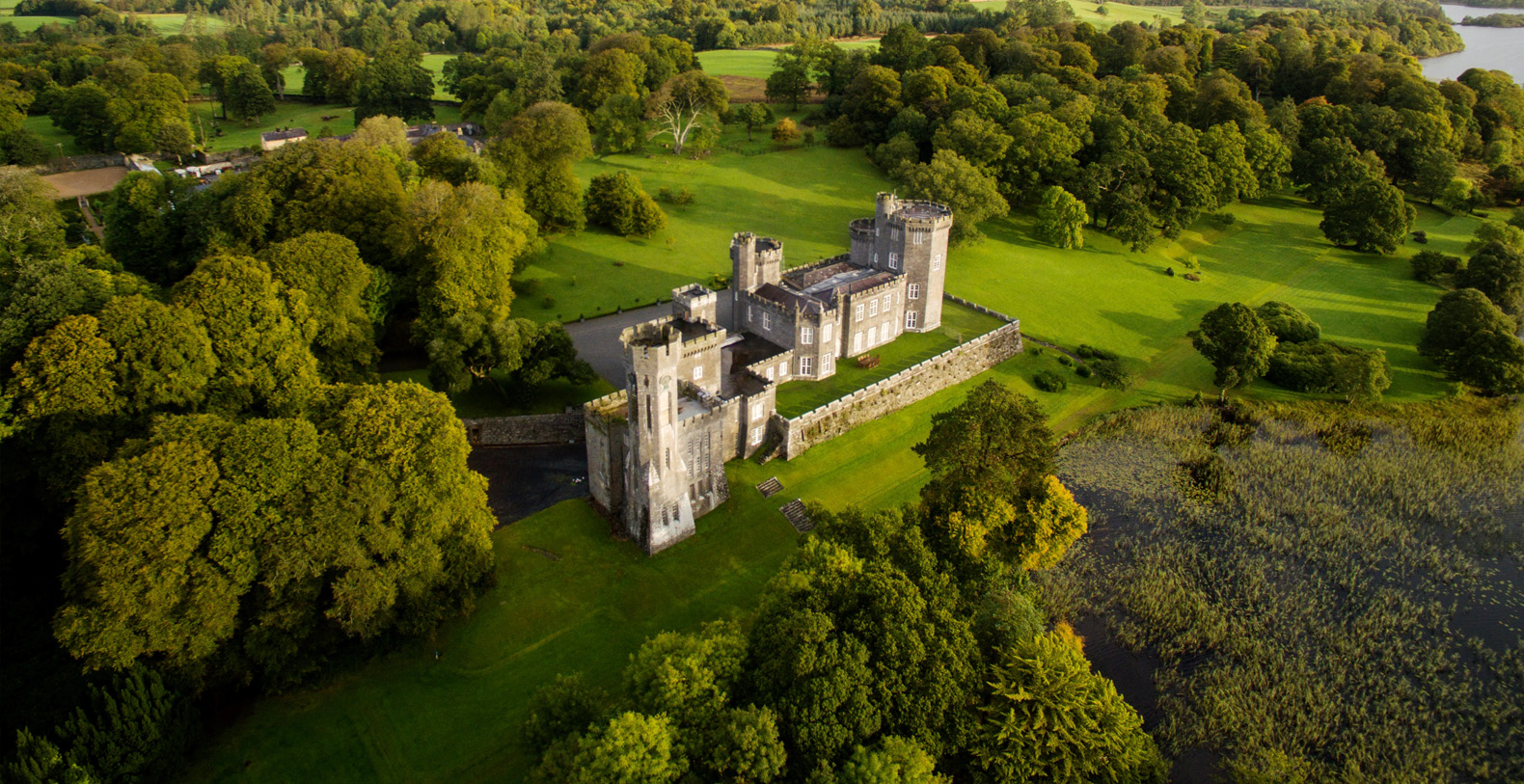 Lough Cutra Castle is a self catering private family home that can accommodate up to 17 guests in 9 luxurious bedrooms. An exclusive but central location on Ireland's Western seaboard in Gort, Co. Galway, Lough Cutra was designed by John Nash who worked on Buckingham Palace. The estate has been privileged to host discerning guests such as His Royal Highness Prince Charles and Duchess of Cornwall Camilla, Irish President Michael D Higgins, Bob Geldof, Lady Augusta Gregory and WB Yeats. The countryside surrounding Lough Cutra holds many a story, dating back centuries.