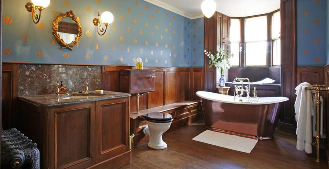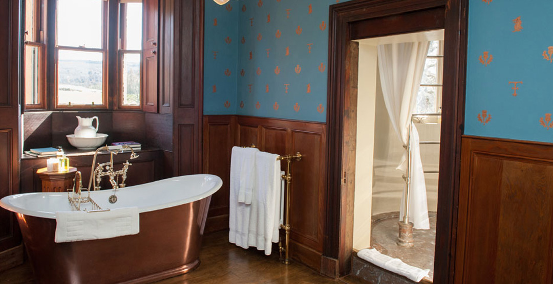 There are fifteen bedrooms at the Castle, ranging from grand four-posters, swathed in sumptuous velvets and brocades, to the cosiest little single rooms, with a charm all of their own. Each bedroom and bathroom is entirely individual: one may be furnished with classic simplicity, another with generous dashes of eccentricity, yet all are wonderfully comfortable. Each of the bedrooms has its own personality, as well as its own distinctive furnishings. Some are decorated in honour of a previous owner at the Castle; some are themed around a period style and others around the architectural features of that particular room. The bathrooms are equipped with the very best of classic British fitments, designed in traditional style.