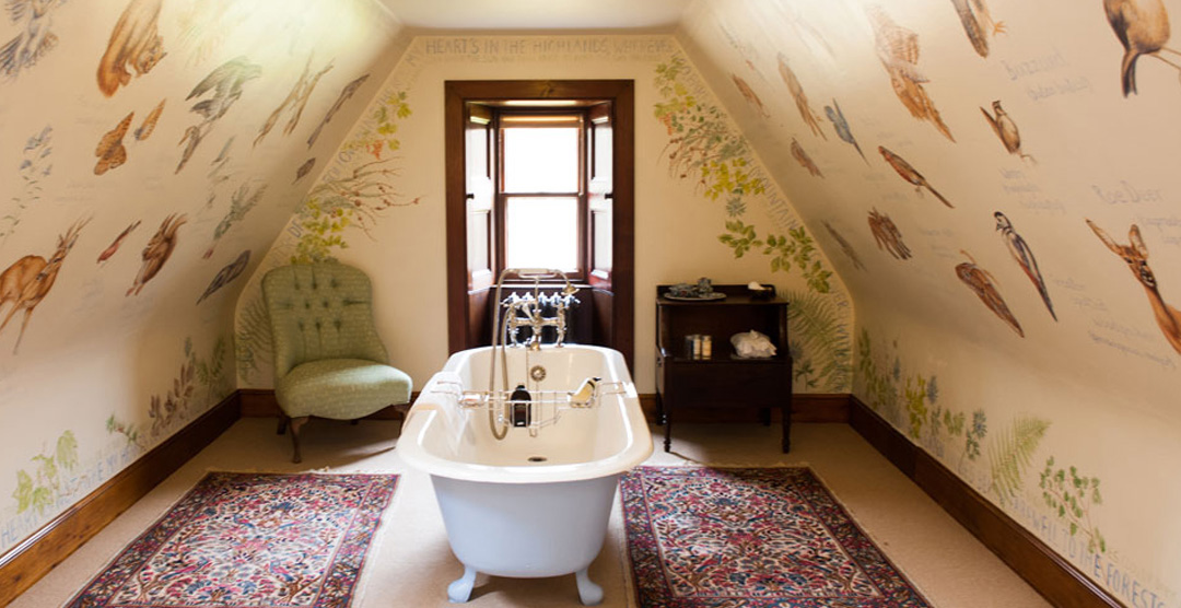 Finally, FOUR IN HAND is a double room, unusual in shape, featuring a large alcove and the adjacent Wildlife Bathroom. As if the delights of Lochness Castle itself were not enough, the great outdoors offers equally spectacular appeal. Quite apart from the history, geography and poetry of Loch Ness, the whole region is a paradise for walkers, hikers, golfers, cyclists, hunters, fishermen, falconers and nature lovers alike.