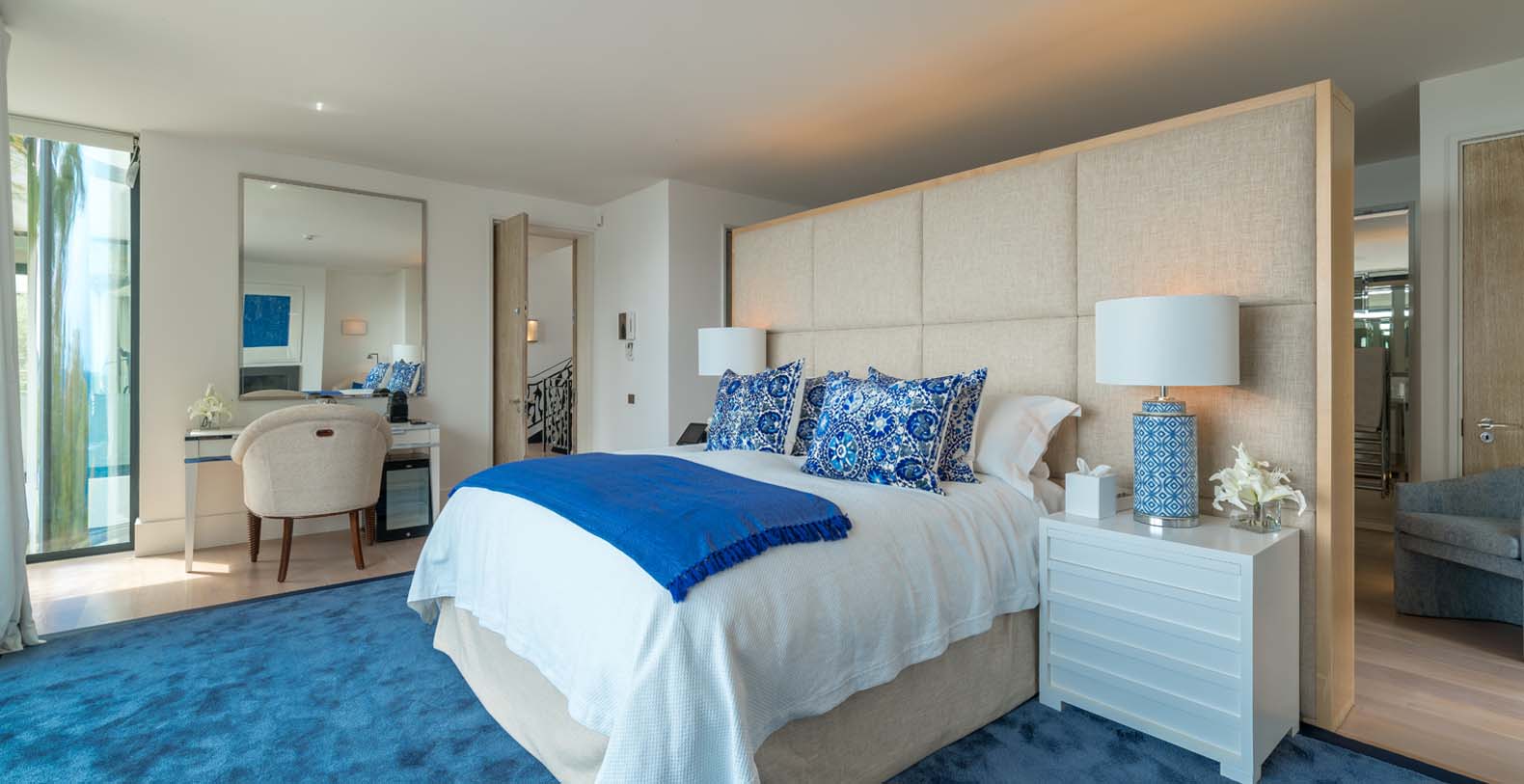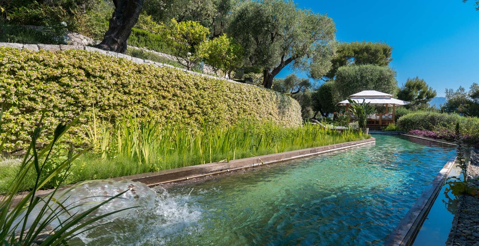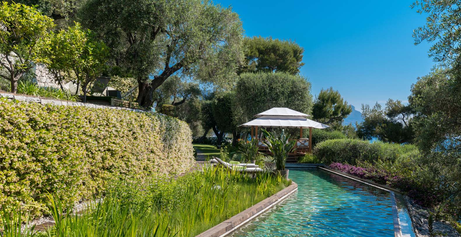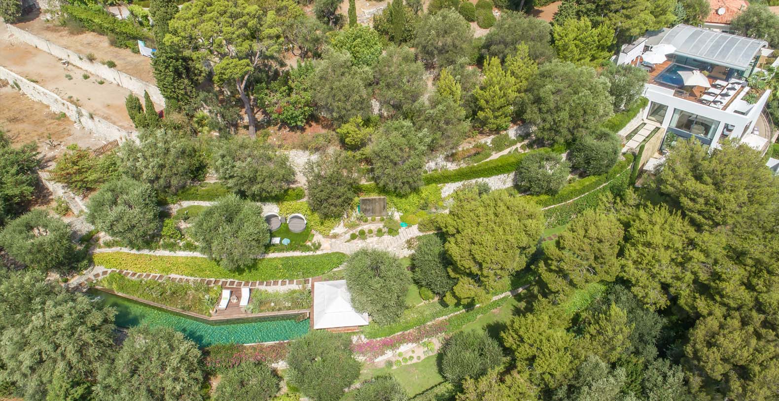 There are over 4,500 square meters of gardens. Lavender lined pathways provide panoramic views over the peninsula. A cornucopia of flowers bursts through rockery walls. Olive, Cyprus and eucalyptus trees give shape and shade; jasmine, rosemary and jacaranda perfume the entire estate. Soft, manicured lawns undulate to an aquamarine pool. A wooden footbridge leads to our two bedroom, magic garden, Tent house Suite. A Balinese style pool house provides shade in which to read, dine or snooze away a hot summer afternoon. Step into the infinity pool that curves around the garden. Cocktail in hand, gaze out over the bay filled with yachts. Breakfast, lunch and dinner can be served in your suite, on the terrace, in the dining room, on the lawn or by the pool (either pool of course). Dinner at 8 or a midnight feast with lanterns. Attention to detail is phenomenal because that’s how we like it.