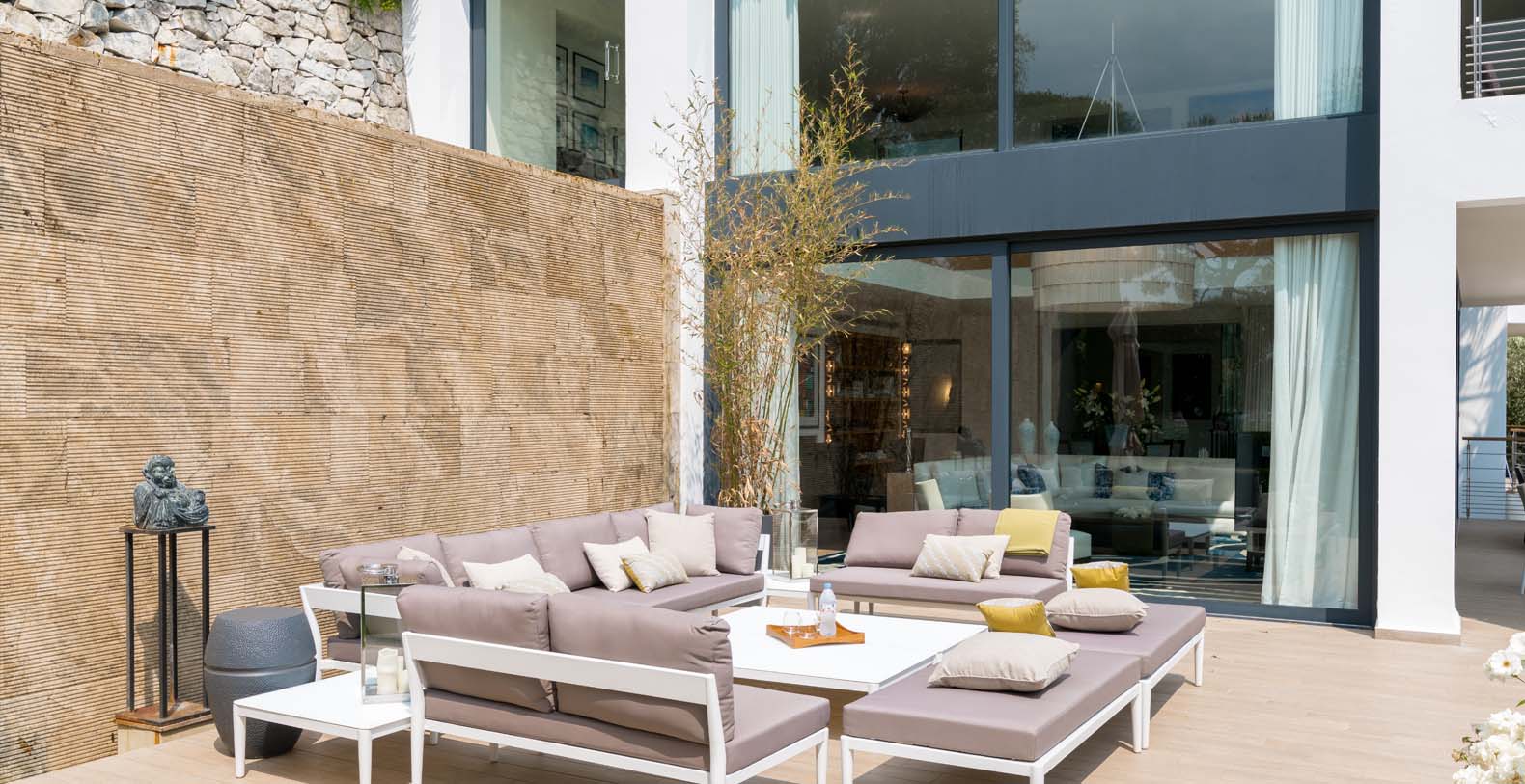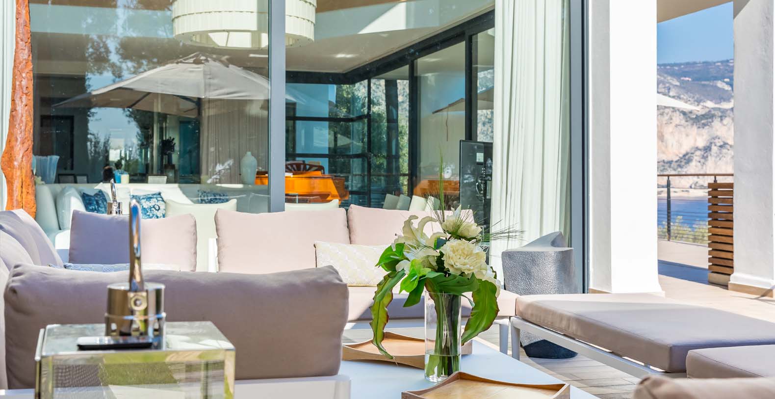 Villa O has four luxurious bedrooms and one double bedroom available for staff. All of the rooms have lounge areas, beautiful ensuite bathrooms and Bang & Olufsen entertainment systems. Rooms are spacious, with wonderful views and with a high quality finish befitting this kind of luxury living. The external areas and gardens are as varied as they are wonderful, with pagodas, terraces, eco swimming pool, tiled Jacuzzi tub and manicured lawns all with the breath-taking vista across the Mediterranean Sea. All parties will have friendly and professional staff on hand day and night to be sure that every need is met and fully catered for.