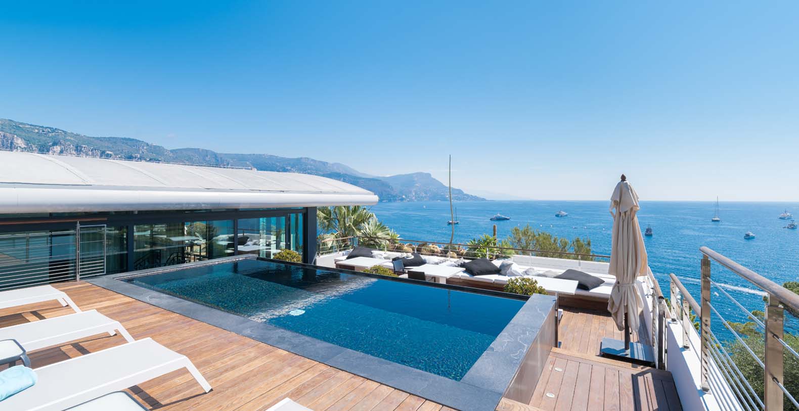 Villa O is perched on the slopes of Cap Ferrat with an exquisite view of the Mediterranean Sea and truly is one of the most desirable properties in this exclusive stretch of the French Riviera. A contemporary villa that is only a short walk to Saint Jean Cap Ferrat Village and Harbour. It offers an outstanding setting to entertain guests, families, host a party or relax in secluded privacy.