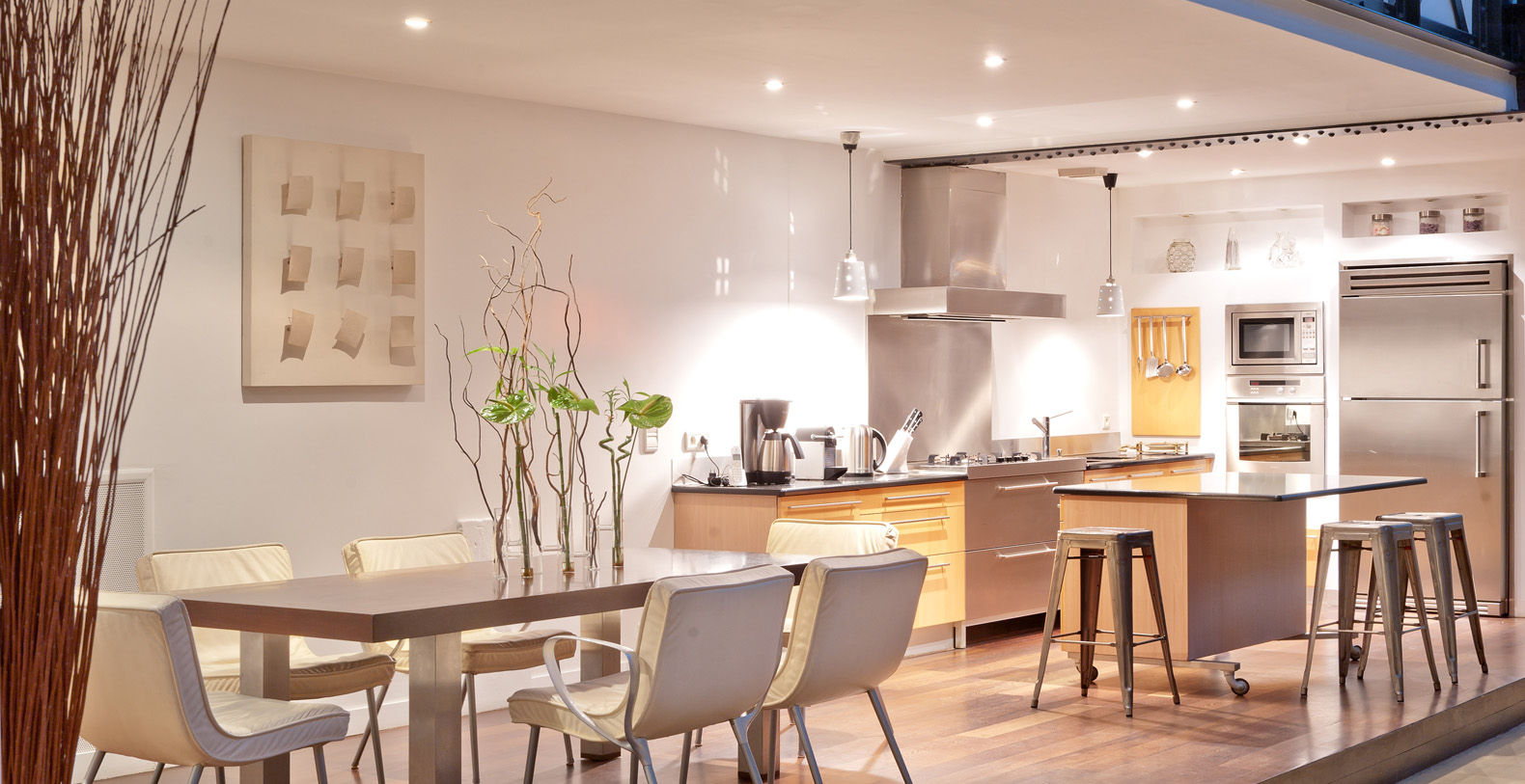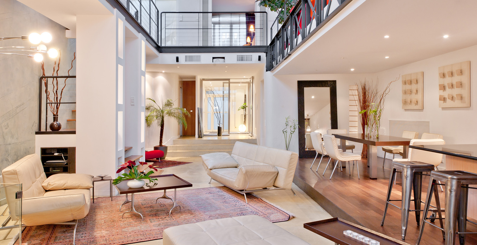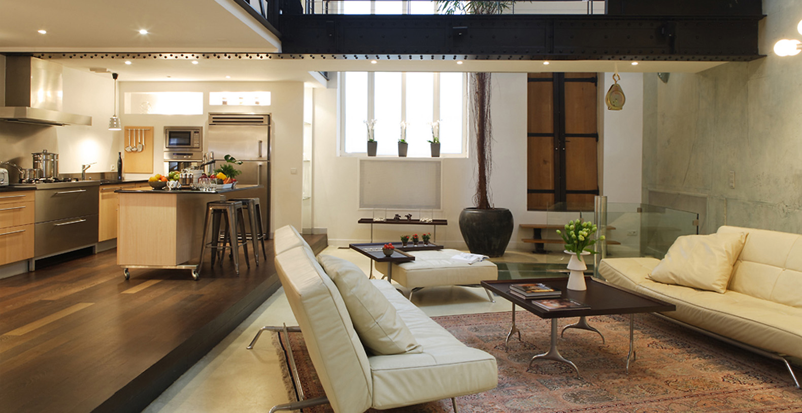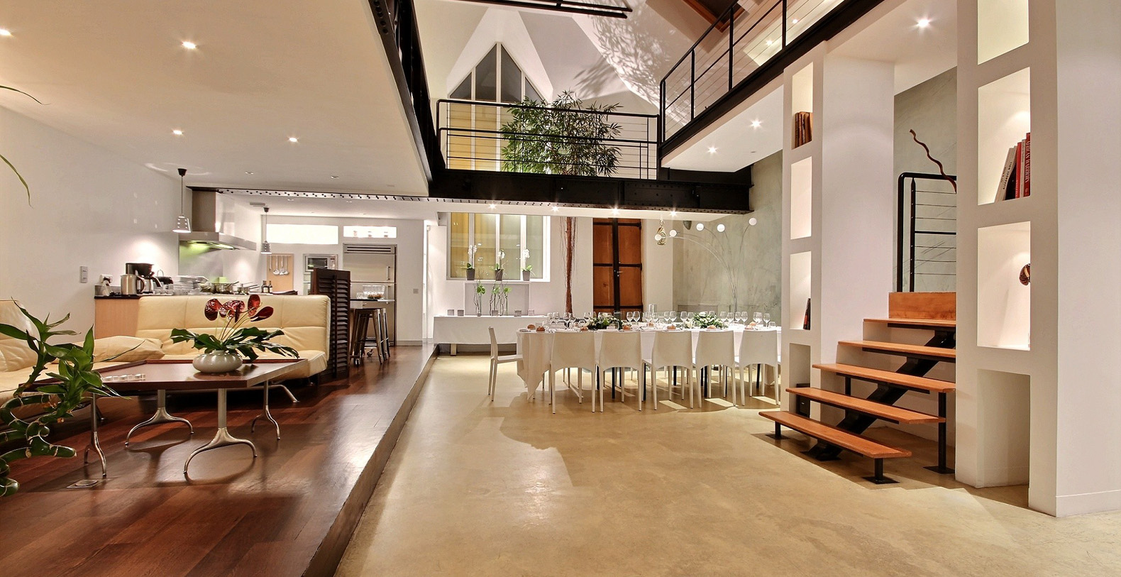 Originally a 19th Century Industrial Printing House built by Gustav Eiffel, the Designer Lofthas been transformed into an exclusive, contemporary loft space, offering a warm atmosphere and modern facilites for professional or residential use. Designed to be modular according to differing requirements, the property offers diverse spaces that can be adapted according to needs, including two lounge areas, a kitchen with a mobile island that can be moved if required, floating passageways and up to 4 double bedrooms that can be made up on request. Furniture can be stored or re-arranged according to requirements.