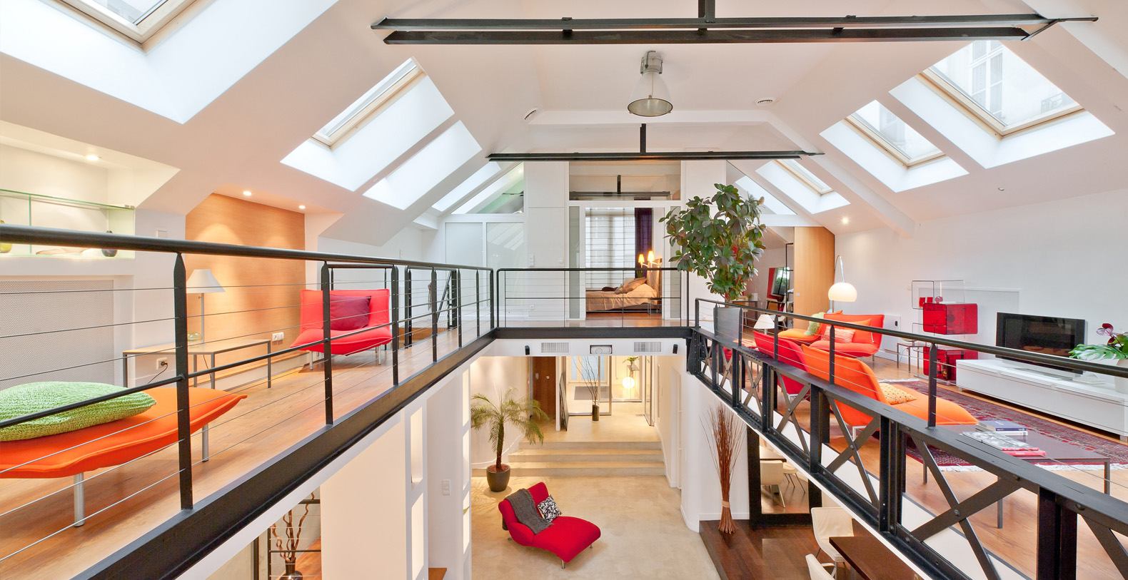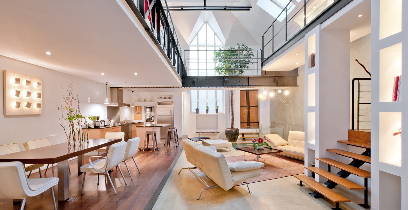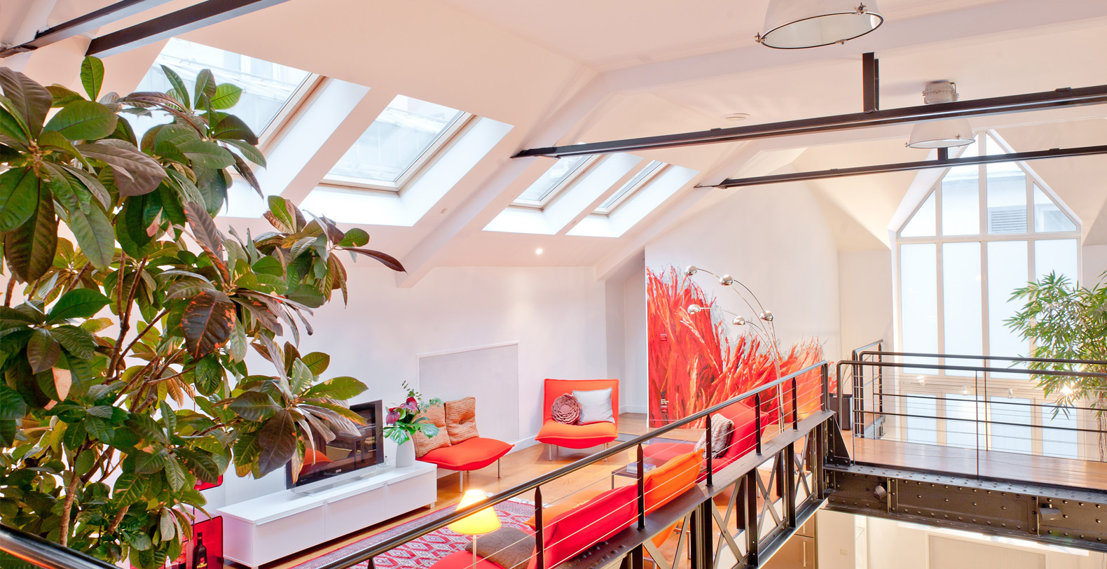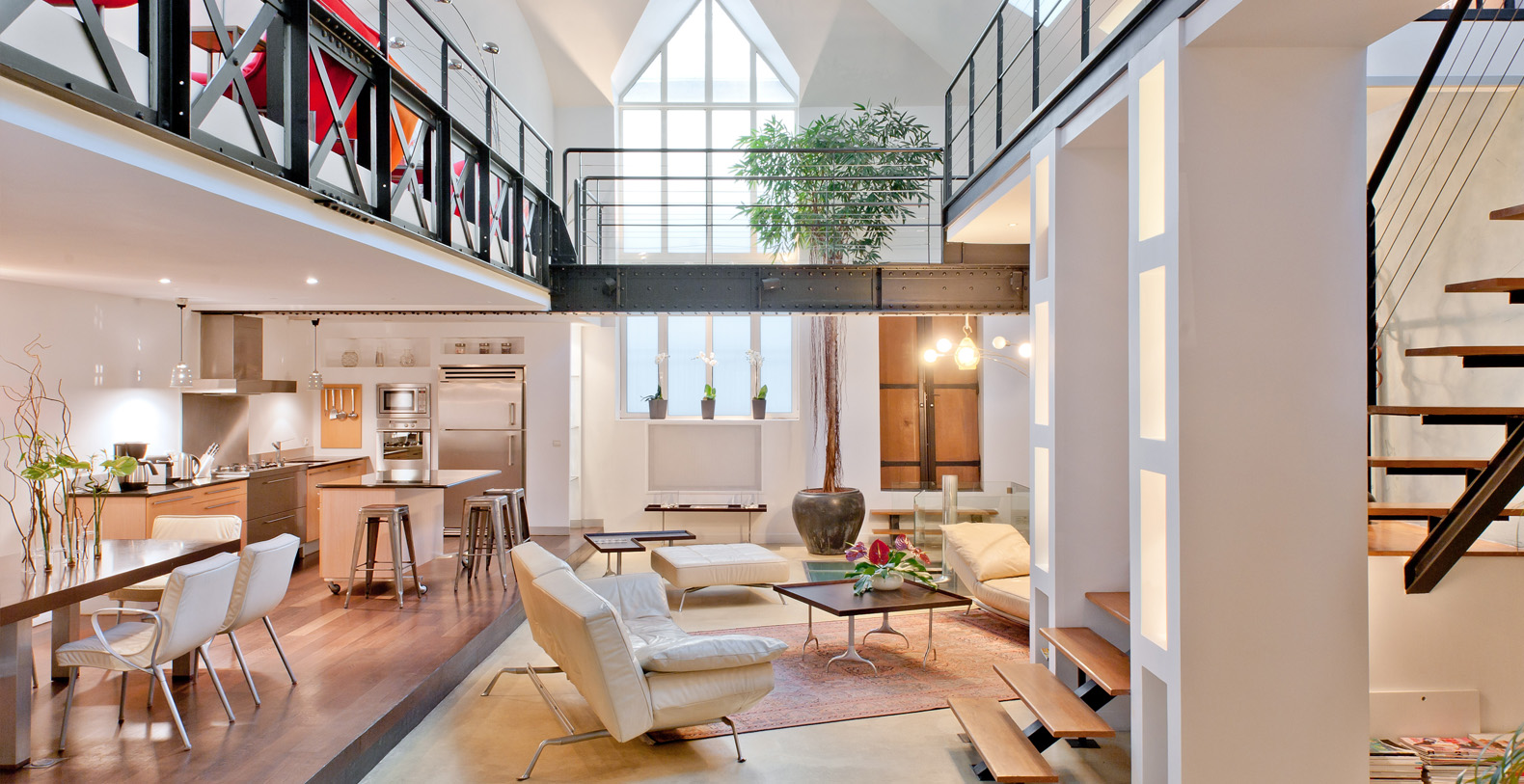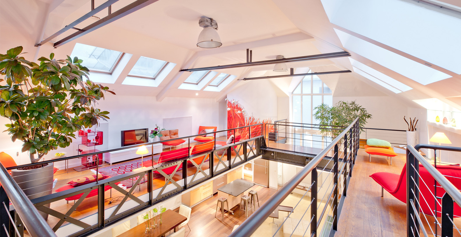 Originally a 19th Century Industrial Printing House built by Gustav Eiffel, the Designer Lofthas been transformed into an exclusive, contemporary loft space, offering a warm atmosphere and modern facilites for professional or residential use. Designed to be modular according to differing requirements, the property offers diverse spaces that can be adapted according to needs, including two lounge areas, a kitchen with a mobile island that can be moved if required, floating passageways and up to 4 double bedrooms that can be made up on request. Furniture can be stored or re-arranged according to requirements.