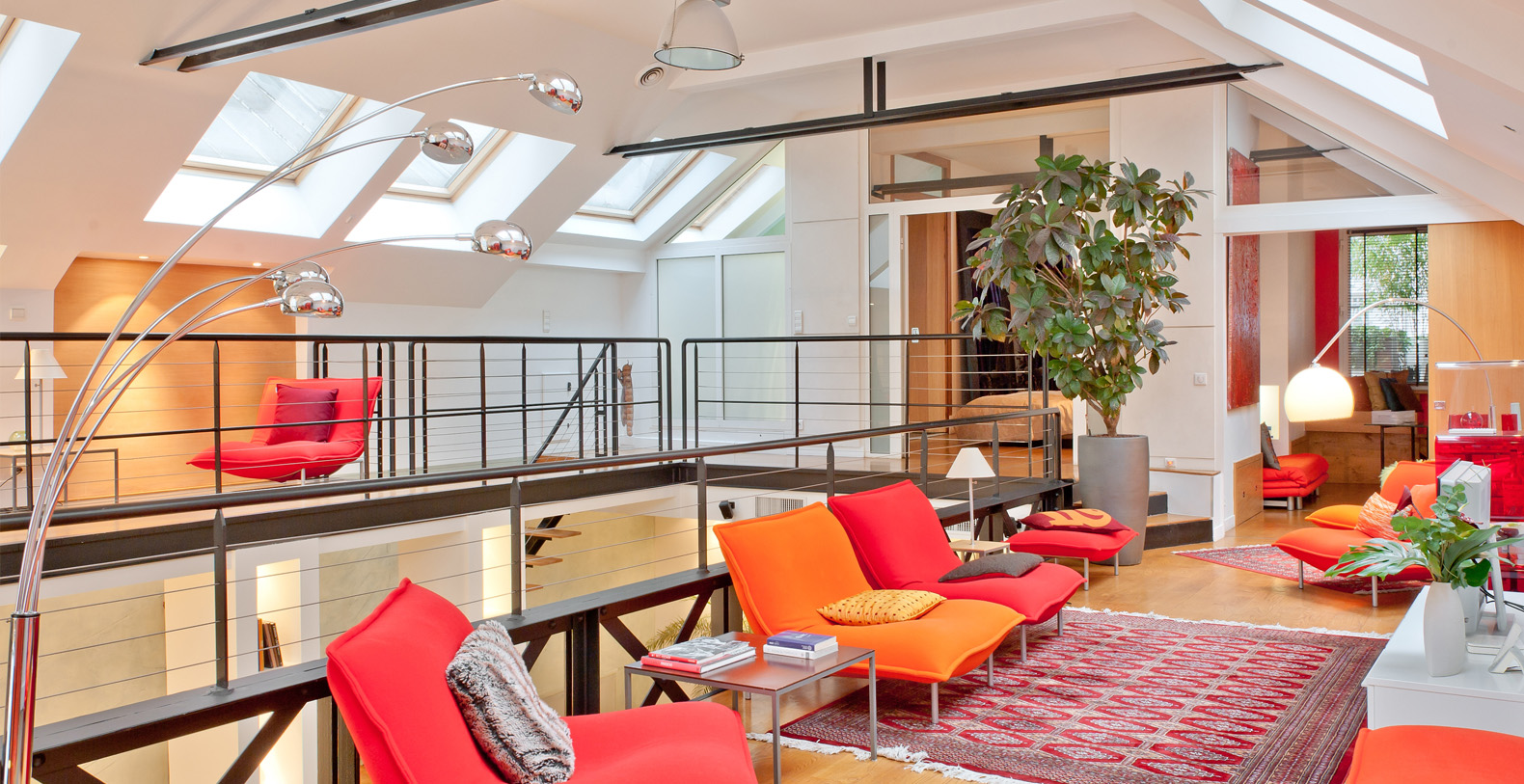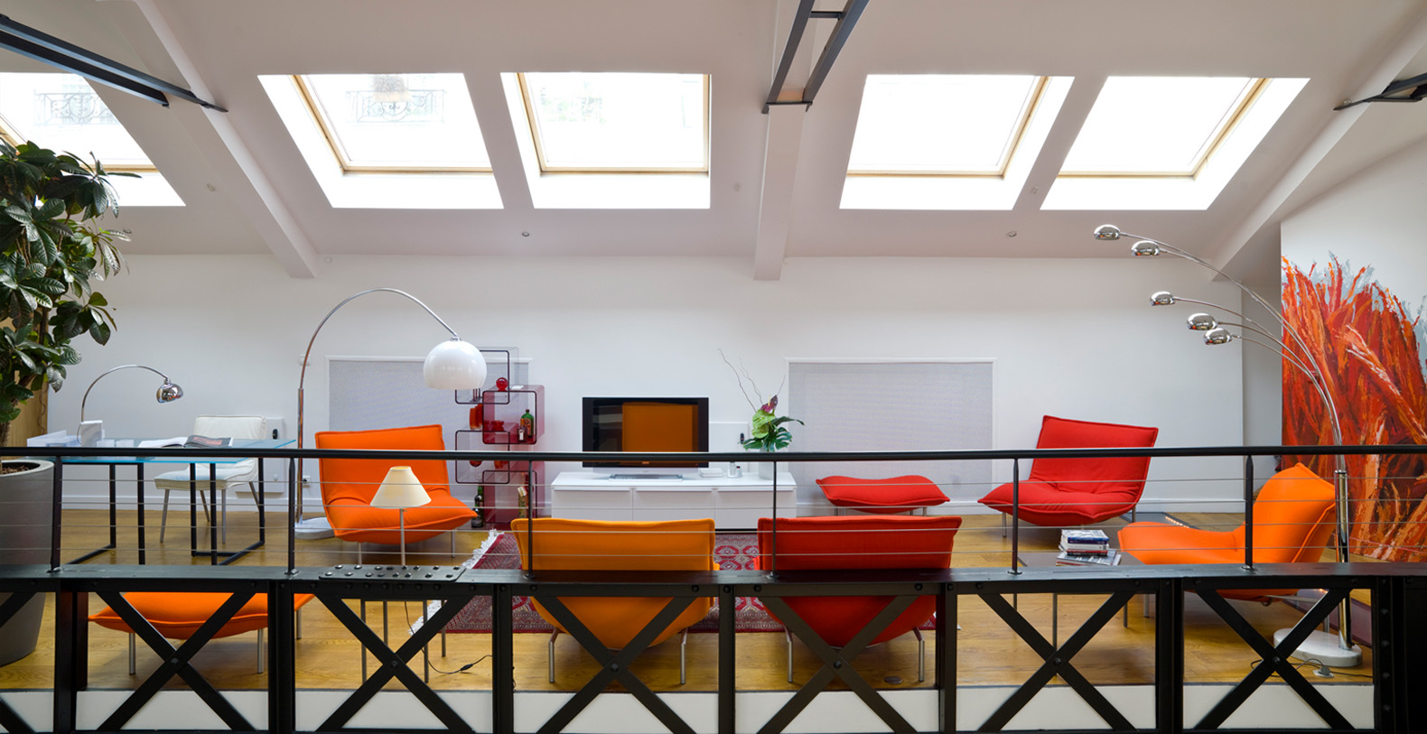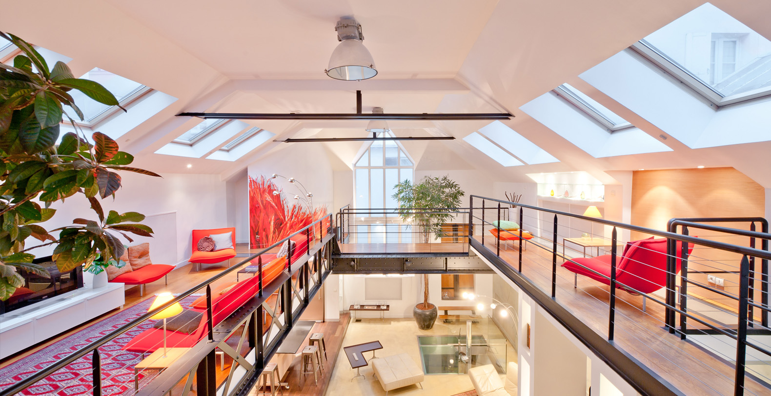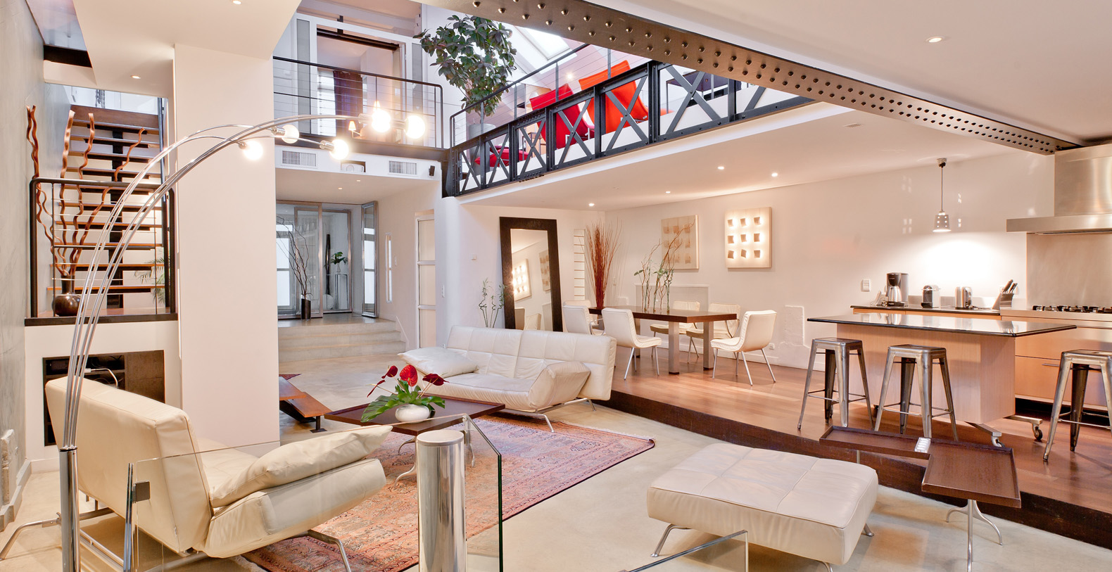 Originally a 19th Century Industrial Printing House built by Gustav Eiffel, the Designer Lofthas been transformed into an exclusive, contemporary loft space, offering a warm atmosphere and modern facilites for professional or residential use. Designed to be modular according to differing requirements, the property offers diverse spaces that can be adapted according to needs, including two lounge areas, a kitchen with a mobile island that can be moved if required, floating passageways and up to 4 double bedrooms that can be made up on request. Furniture can be stored or re-arranged according to requirements.
