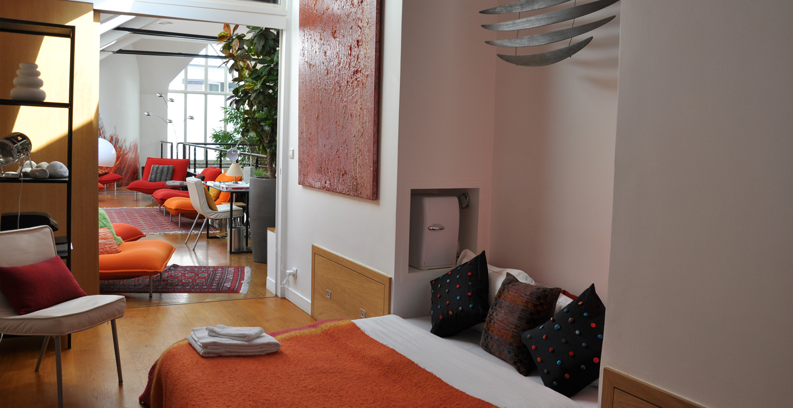 The Designer Loftis situated in the Quartier Montorgueil - a lively pedestrianised quarter that hosts many fashion brands, designer boutiques and showrooms. Montorgueil also offers a wide range of good dining and has many convivial bars and cafés.