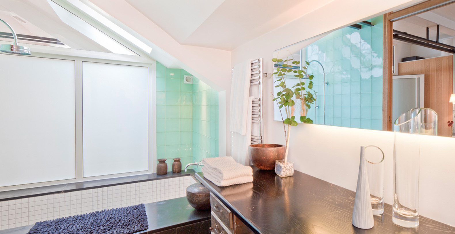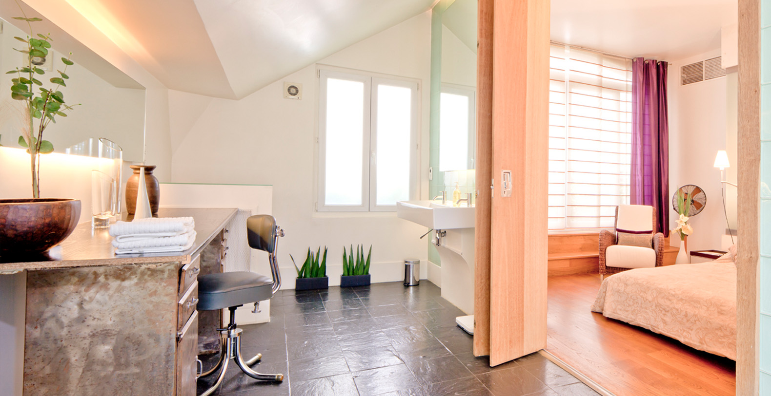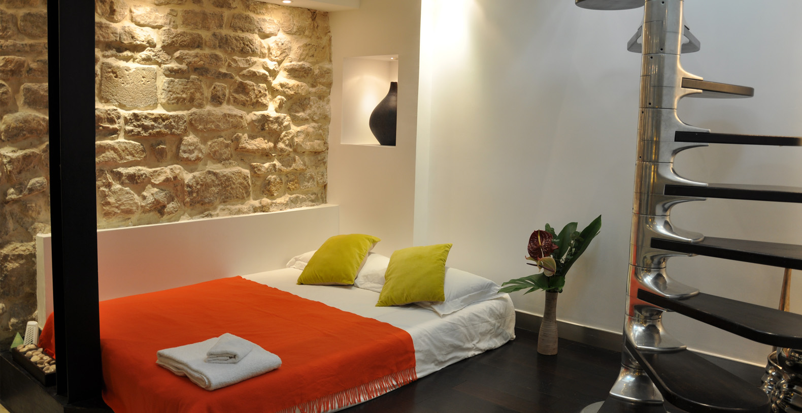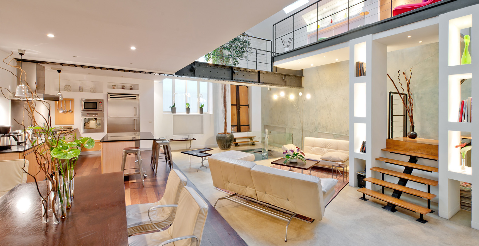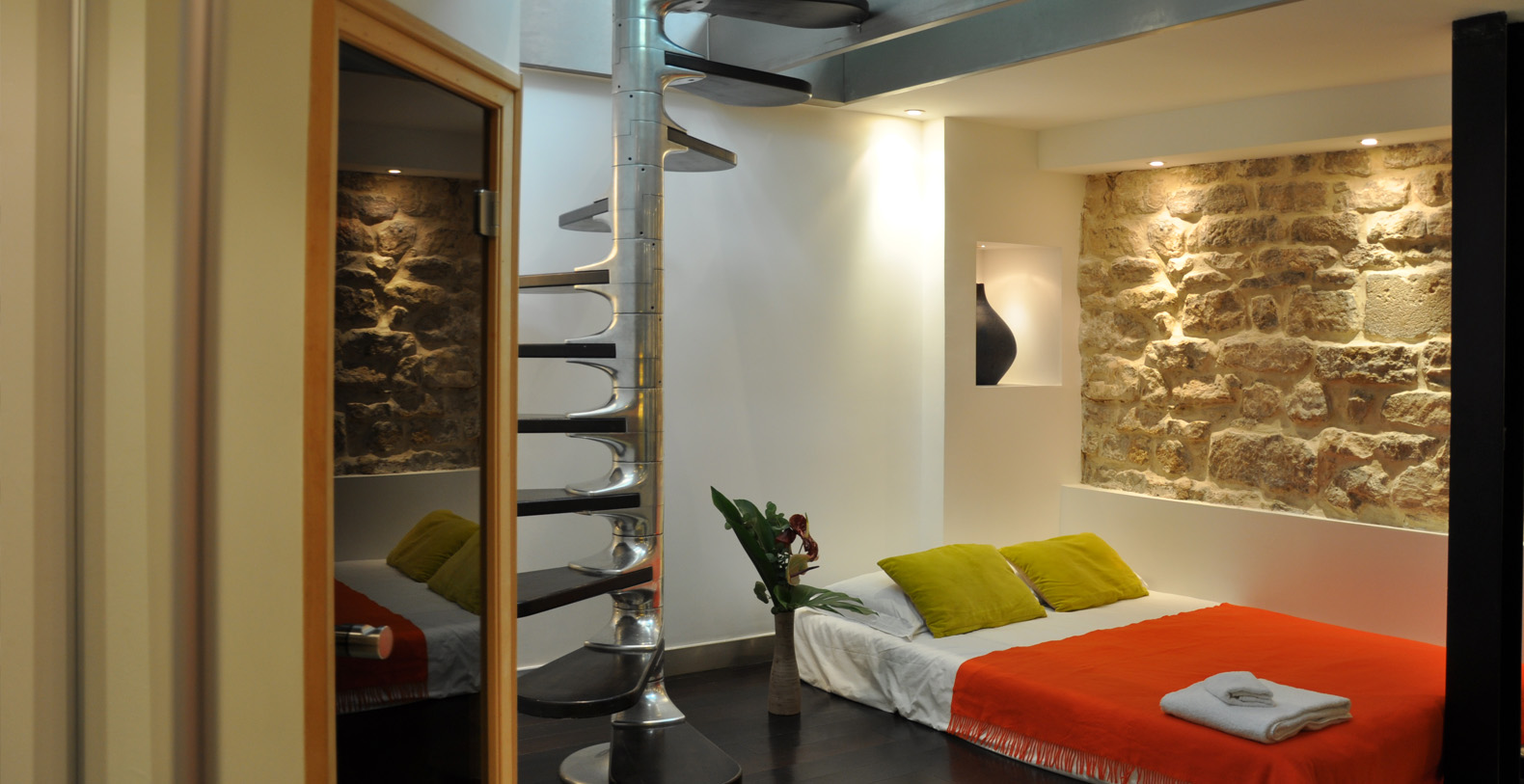 The Designer Loftoffers a terrasse overlooking the private courtyard and has access to a charming and well preserved 19th Century paved passage way providing a smoking area and second access for deliveries.
