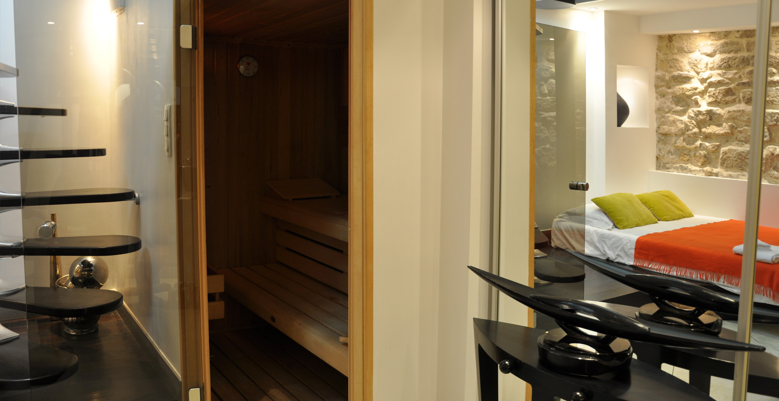 The Designer Lofthas a relaxation room on the lower level, including a sauna, a hydro-jet massage shower an eliptical trainer and multi-gym.