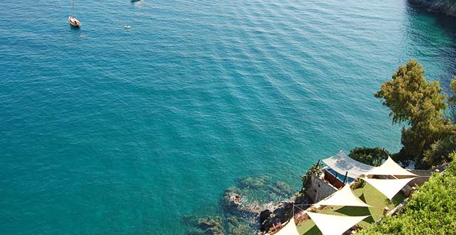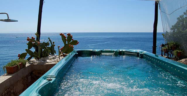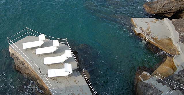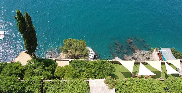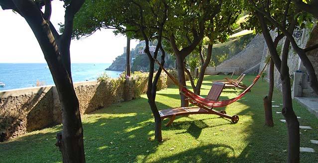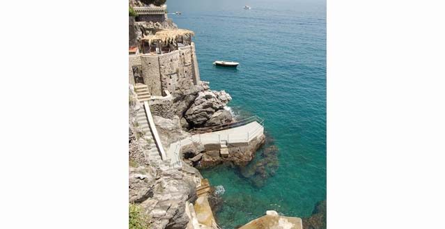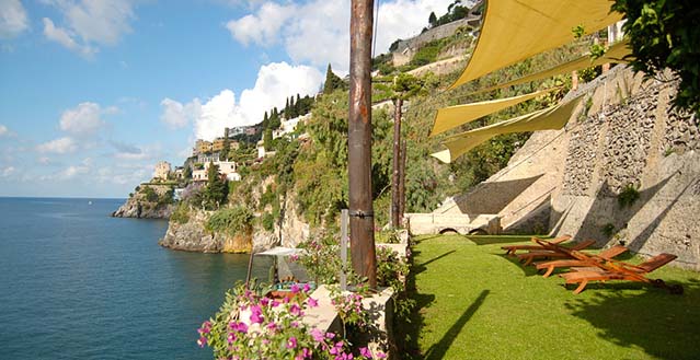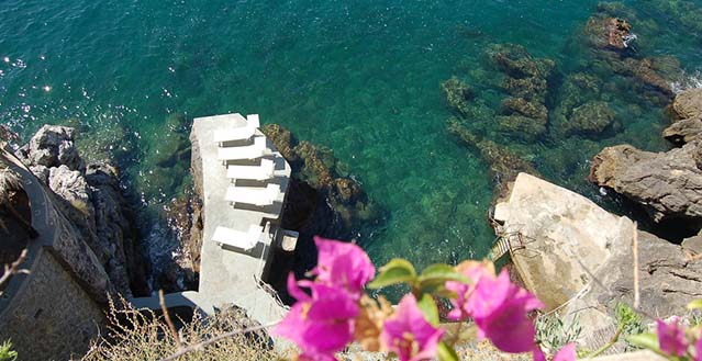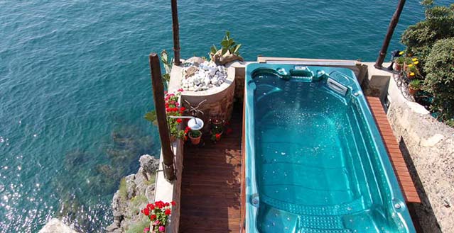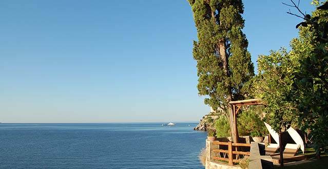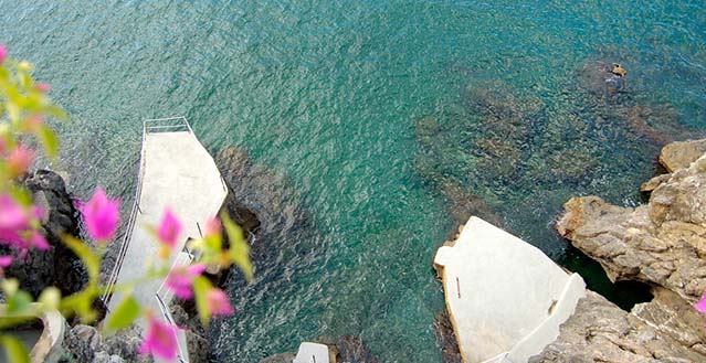 The property has a private garden of about 1.500 sqm, with private access to the sea by a stairway: one hundred and thirty stone steps run through bougainvillea terraces and lemon and orange gardens, until they reach the equipped solariums, the natural caves, the pool with water massage set in the panoramic viewpoint and a small private pier set in the enchanting inlet of the sea cliff.