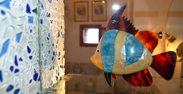 Its four stories are connected by an ancient stairway with artistic inlaid wood handrails and arched windows overlooking the beautiful sea. At the Villa’s entrance, on the ground floor, you can find Prelude and Overture, which are the reception areas - with internet point & tourist information - and the living room with a fireplace and ancient library.