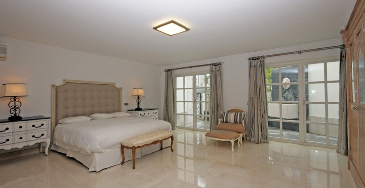 Master Bedroom: king size bed - top floor - separate kitchen - jacuzzi - office - walk in wardrobe - laundry chute - balcony area - access to sun terrace.