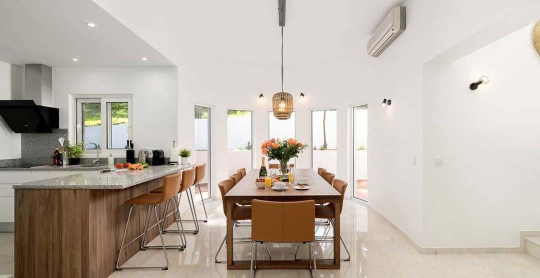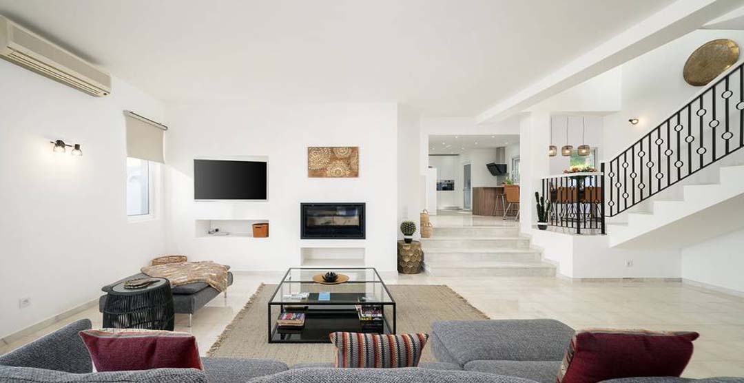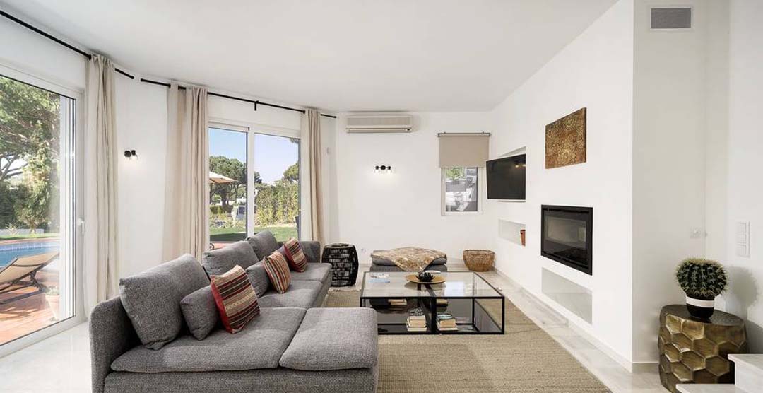 This recently renovated 4 bedroom villa is located in the private and secure Dunas Douradas development, set between the luxury Vale do Lobo and Quinta do Lago resorts, within walking distance to the golden beaches and a short drive to the renowned golf courses of the area. The property comprises of an open floor plan with a fully equipped kitchen and a breakfast bar, dining area and a spacious lounge featuring a wood burning fireplace and access to the pool terrace.