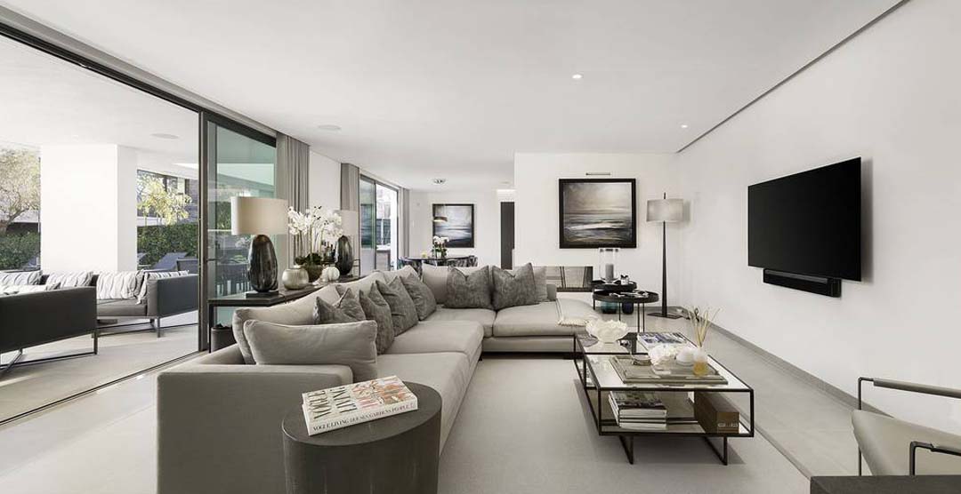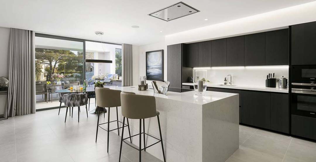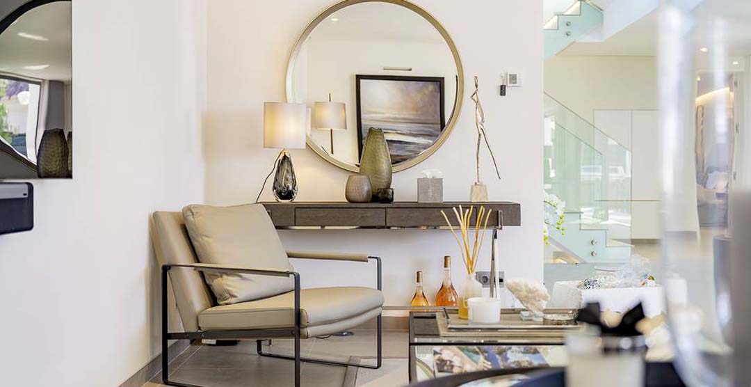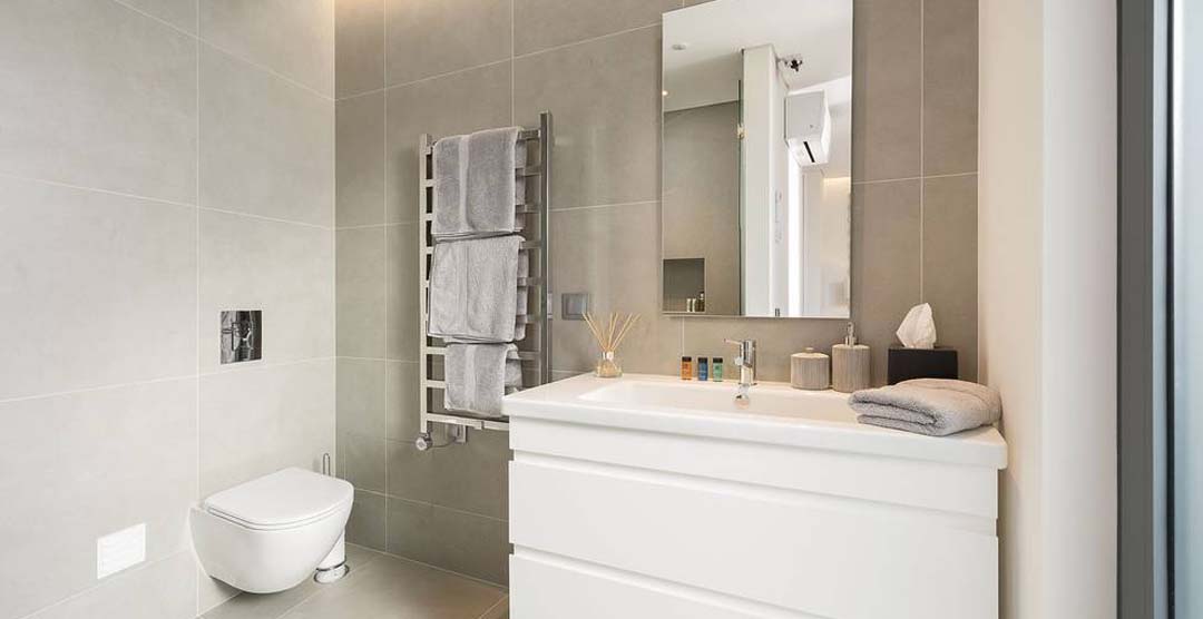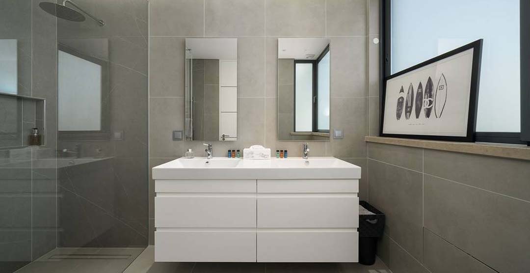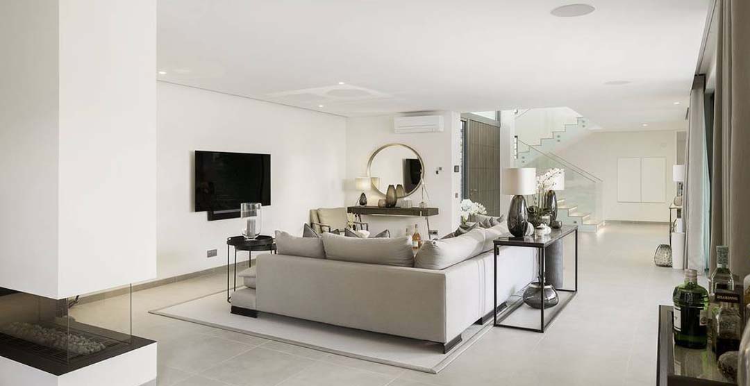 The wonderful living room is very bright and sumptuous, with large windows to the outdoor area. Still on the ground floor there is a guest cloakroom and 2 double bedrooms, both en-suite with walk in shower. On the first floor there is the master suit, with walk in shower and access to two private terraces, one of them overlooking the pool area. On the lower ground floor there is a self-contained area with two bedrooms, one double, en-suite with walk in shower and a twin bedroom with separate bathroom with walk in shower.