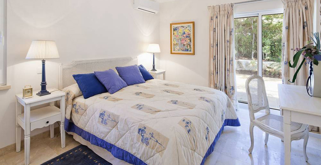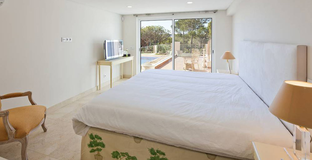 On the left side of the entrance hall there are three en-suite bedrooms all double, one of them is the master bedroom which gives access to the pool terrace.