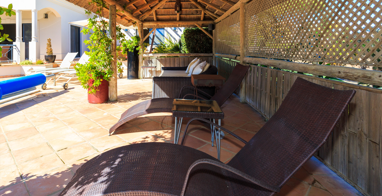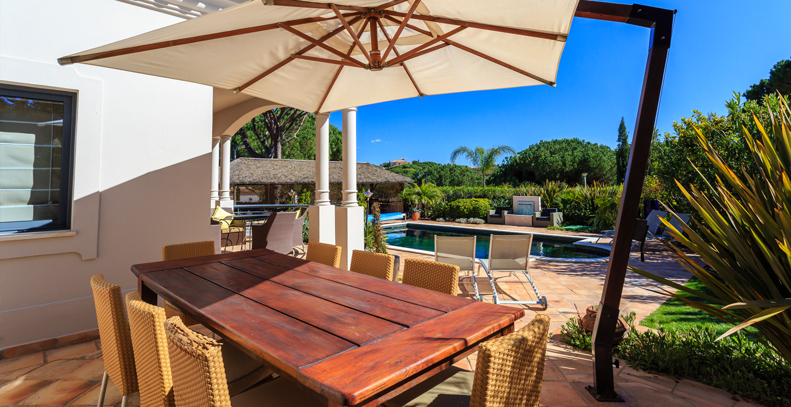 It includes a large heated swimming pool, plenty of space for the sun loungers, beautifully landscaped gardens, 4 different seating areas with shading and a BBQ perfect for "al-fresco” evenings. Sound system, air conditioning and high speed Wi-Fi are provided throughout.