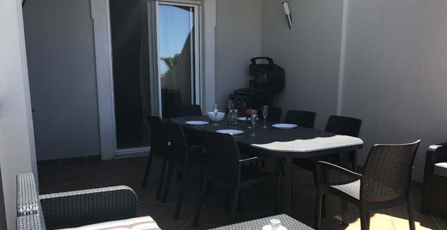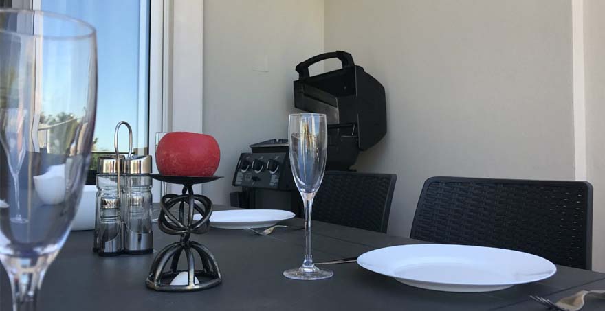 Summer Dreaming is made up of five bedrooms; two ensuite doubles, a further double and two singles. From the top master bedroom you can enjoy a morning coffee or summer sun downer looking out at sea views. The owner’s have decorated all communal areas to a high standard allowing for total relaxation in this modern townhouse. The kitchen cum dining room is fully equipped with all your holiday needs, including a Nespresso coffee machine (not George Clooney I’m afraid). The lounge area, equipped with smart TV, leads out to the BBQ dining terrace which is great to enjoy all meals and a spot of R&R.